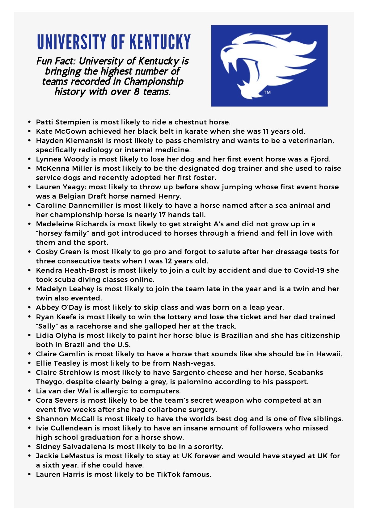 Before the action starts, find out which championship competitor has over 30,000 TikTok followers, or who is most likely to skip class, or which one is the team dad in the Meet the Teams preview.