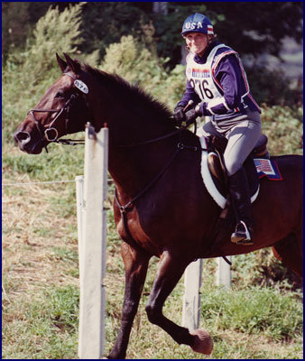 “Albany was the 10th horse to start on course. We managed to find our way around the first roads and yacks with no mishaps, all of the directional markers still in place. My coach and teammate Bruce Davidson was at the start of steeplechase [phase B], and he gave me valuable advice on how it was riding. The track was hilly, and the sand footing was tiring for the horses. The course went around the circular track, then crossed the diagonal and changed directions, then went around the whole circuit twice more. It seemed like the longest four and a half minutes of my life! The fences were big round banks of brush, some with ditches in front, and most jumped in both directions. Albany jumped great, and when I checked my watch we were right on time at all the minute markers - we ended up finishing two seconds under the time.”