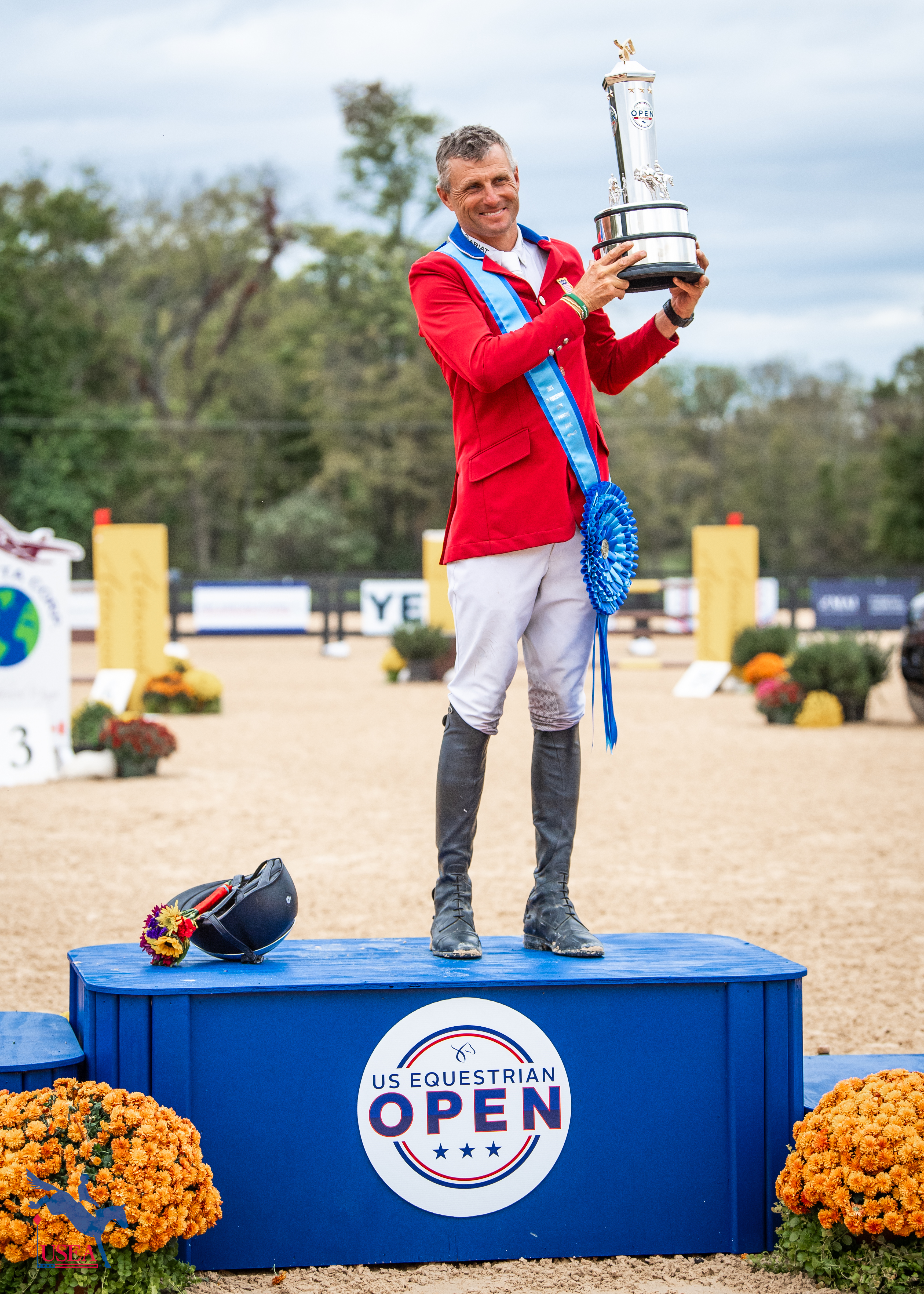 “To be honest, it's a bit of an awkward way to win,” reflected Martin. “Will Coleman’s horse, Timmy [Off the Record] is a legend. We've been on teams together through the World Championships and Olympic Games. I didn't actually see his rail come down, and it's hard to know how to react sometimes when you win by default. It's a legend horse, Off The Record, and he's been going strong for years. I suppose Miks Master C is similar— they're veterans of the sport and really looking at the field, the top horses were the sort of the season campaigners. They're both five-star horses, and then it was good to see a strong list of four-star horses coming through for the country. I’m just very honored and proud to win this beautiful US Equestrian Open trophy.”