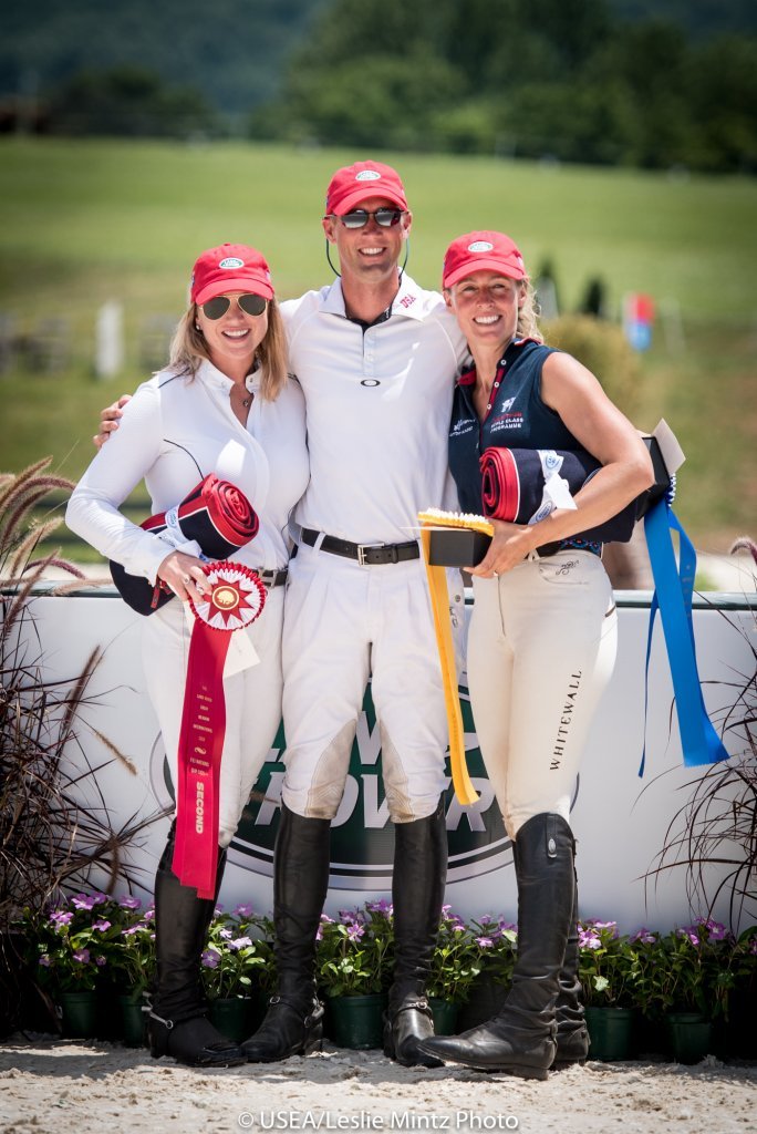 From left, Marilyn Little, 2nd, Clark Montgomery, 1st, and Jodie Amos, 3rd. USEA/Leslie Mintz Photo.