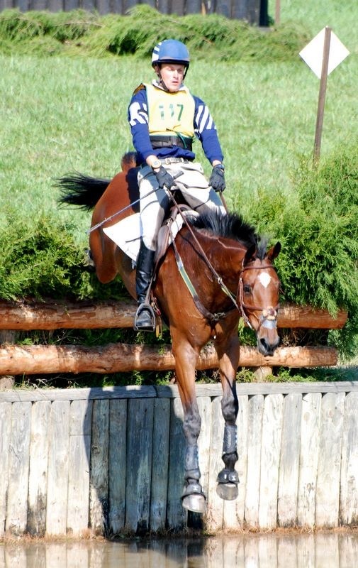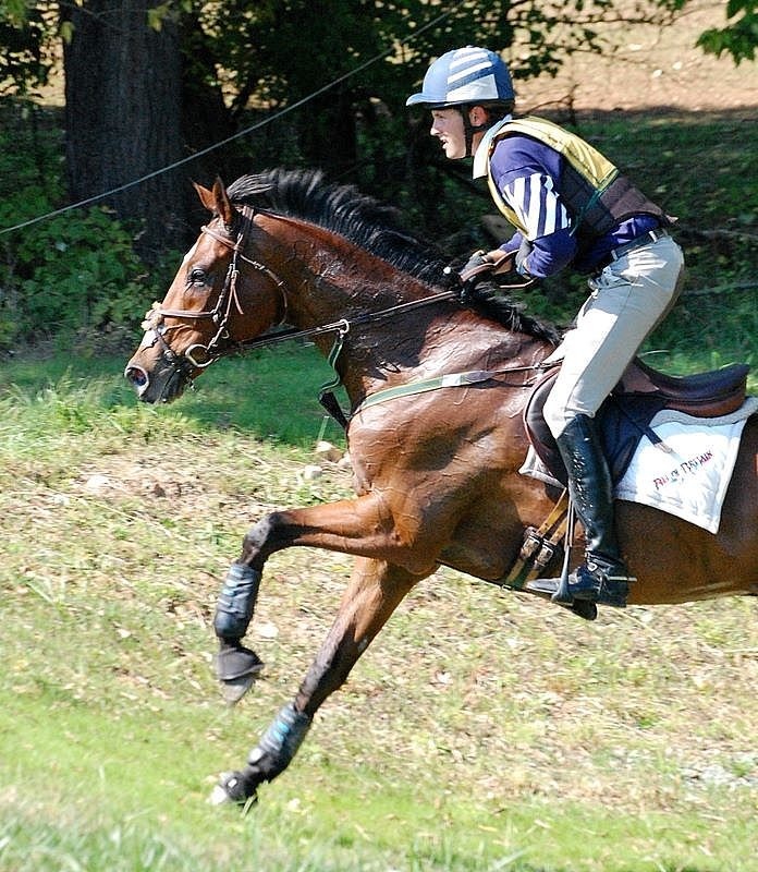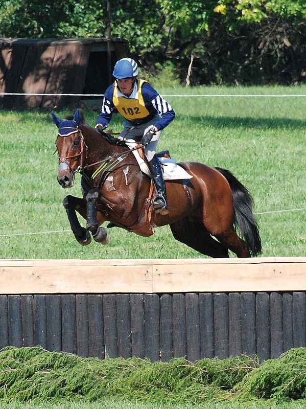Allison Springer on her own Destination Known finished in 6th.Over the "Vicarage Vee" and looking good!"Berger" is a 10yo Thoroughbred gelding (and athletic, to say the least!)This pair was third in the Advanced at Maui Jim HT this year and 6th at Jersey Fresh CCI3*Olympic veteran Amy Tryon aboard Coal Creek, owned by Tim & Kathryn Sullivan.Coal Creek is an 8yo TB gelding sired by Devil on Ice.Amy recently returned from representing the U.S. in Hong Kong at the Olympic Games.This pair is aiming for the Fair Hill CCI3* in a few weeks. They were 6th at The Fork CIC3* back in April.Tryon's other mount Leyland is owned by Mike, Chris, and Elisabeth Nicholson.Leyland is also an 8yo Thoroughbred gelding, and is sired by Dream Creek. He and Tryon claimed top honors at this year's Jersey Fresh CCI3*.Boyd Martin and Benwald, owned by Anne Hennessey.Benwald is a 10yo Irish Thoroughbred (Ridgewood Ben--Zalewska)Boyd originally hails from Australia - he and his wife Silva recently launched a new website.Boyd also rode Suzanne Kloud's Australian Warmblood Falcon Splash.This 11-year-old gelding recently placed fourth in the Intermediate division at Seneca Valley HT with Boyd.Falcon Splash is by Falcon Jigsaw and out of Tia.Boyd' final ride of the day was on Ronald Zabala's Che Kairo.Che Kairo's a 16.1h, 13-year-old Argentine Thoroughbred.Charles Plumb and Westerly leap over the house, headed to the second water.Westerly's a 17.3h Irish Thoroughbred owned by Plumb.Intense!Holly Payne and Jill Gordon's 15.1h Thoroughbred mare Madeline.Expect to see this pair at Fair Hill in a few weeks!James Alliston of Great Britain riding Bruce Davidson's Rock On Rose.Rock On Rose is an 8yo TB mare (Lust--Durado).Galloping for home!Eventing legend Bruce Davidson watches as Alliston gallops through the second water combination.Alliston and Bruce's 8yo Thoroughbred In The Beat drop into the water.Jan Byyny and Syd Kent head to the water complex. A local Virginian, Jan lives just down the road in Purcellville.Syd Kent is a 10yo New Zealand Thoroughbred. He galloped boldly this weekend to finish in second in this competitive division.This pair recently placed 3rd at Richland Park CIC3*