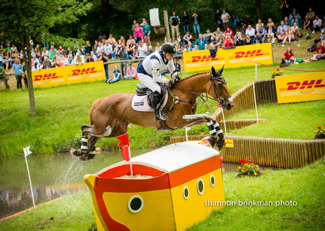The most surprising mishap was for the usually foot-perfect combination of Nicola Wilson (GBR) and Opposition Buzz. The black gelding tripped in the water at fence 4, took off early at the step out and tipped over the boathouse. Neither he nor his rider was hurt.