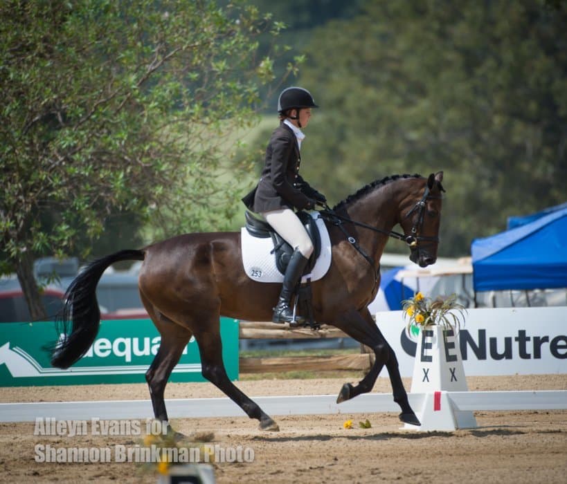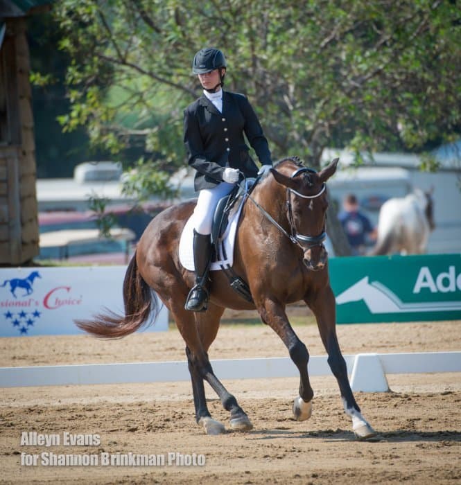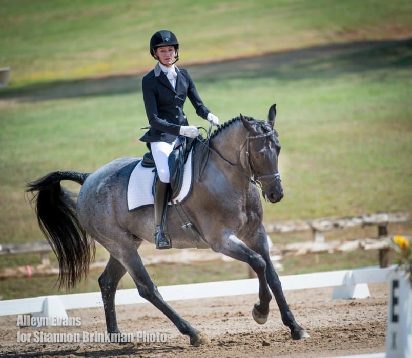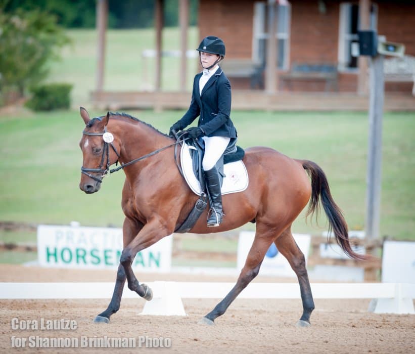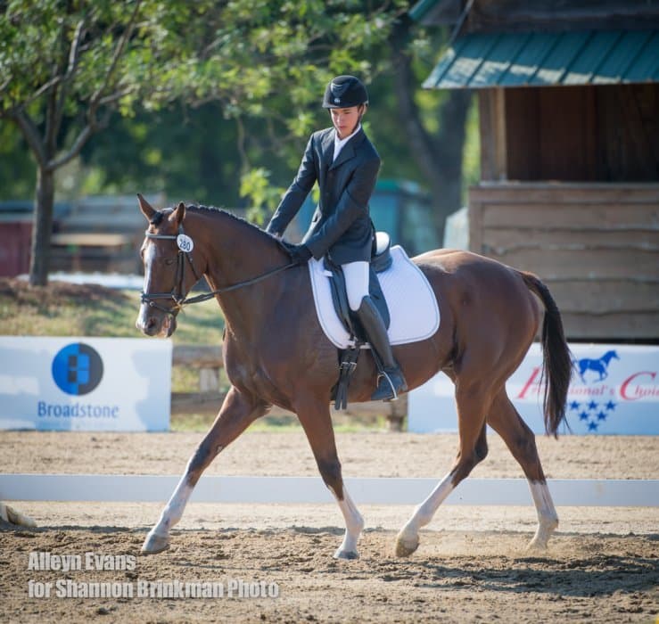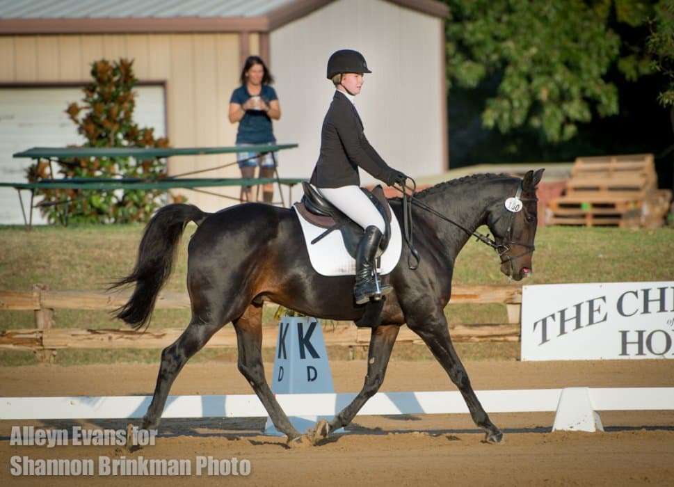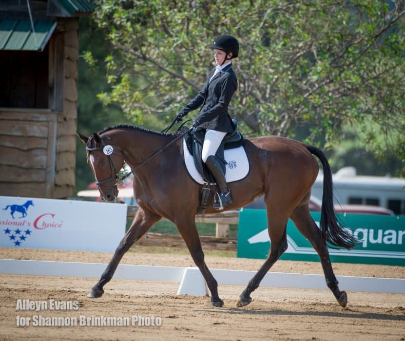 Melody Pruitt took the lead of the Broadstone Beginner Novice Junior division aboard the 8-year-old Thoroughbred, The Flying Ace on a score of 28.5. Pruitt describes, “I’ve been competing at the Beginner Novice level for quite awhile and just over the past year and a half I started riding with a new dressage trainer that has completely turned my horse around. I’m really proud of the point that we’re at now.” After qualifying last year for the AEC and not being able to make it due to an injury to her horse, Pruitt made it a point to return this year and is looking forward to cross-country tomorrow.