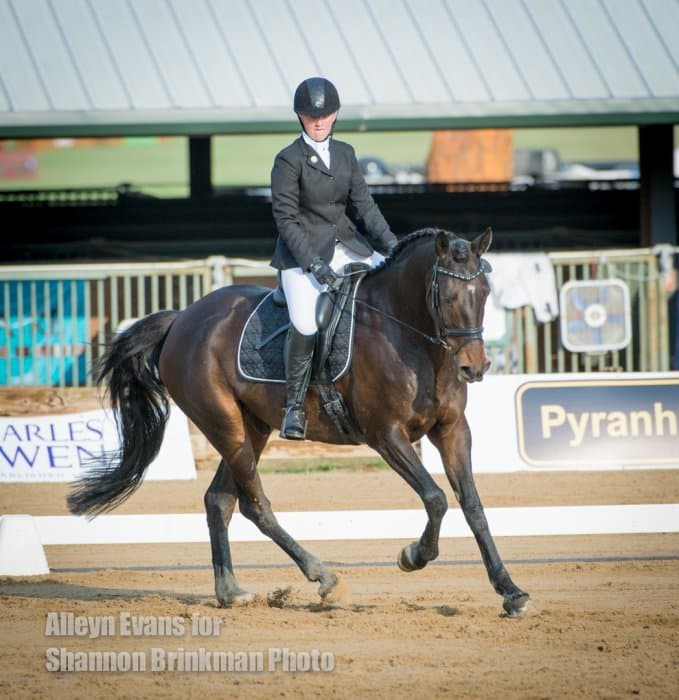 Brigitte Wexler and the 8-year-old Welsh Cob mare, Madoc Alis performed a lovely test to lead the Broadstone Beginner Novice Amateur division on a score of 24.3. “It was great. She was very supple, she was very responsive and most of all we were a team. It was the best dressage test I’ve ever had,” describes Wexler. The AEC is great for the lower-level riders that are looking for that championship feel with more intense competition. Wexler continues, “I’ve always wanted to compete at the AEC. It was a bit intimidating at first seeing all the flags and big horses but the atmosphere is great. I don’t get to see a lot of the upper-level riders compete so having them here this weekend is wonderful, I get goose bumps just watching them!”