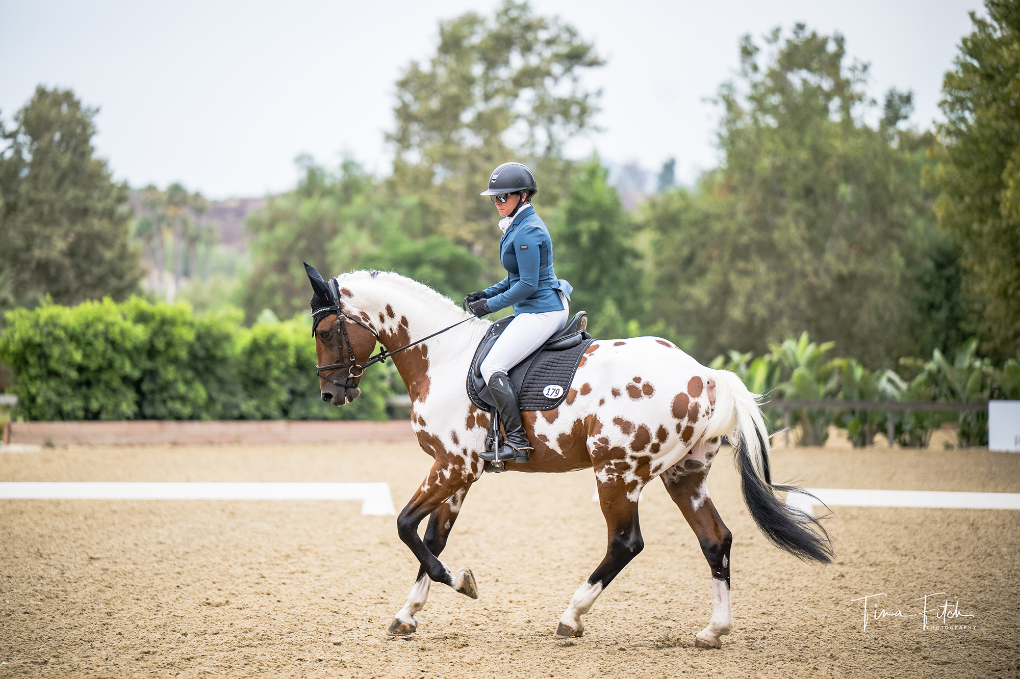 Michaela Smith, of Redwood City, California, and the striking Palomino Cashmaker (Casino Royale K by Golden Princess) earned a 24.2 dressage score to lead their field. Cashmaker is a striking, 12-year-old German Sport Horse owned by Laura Smith.