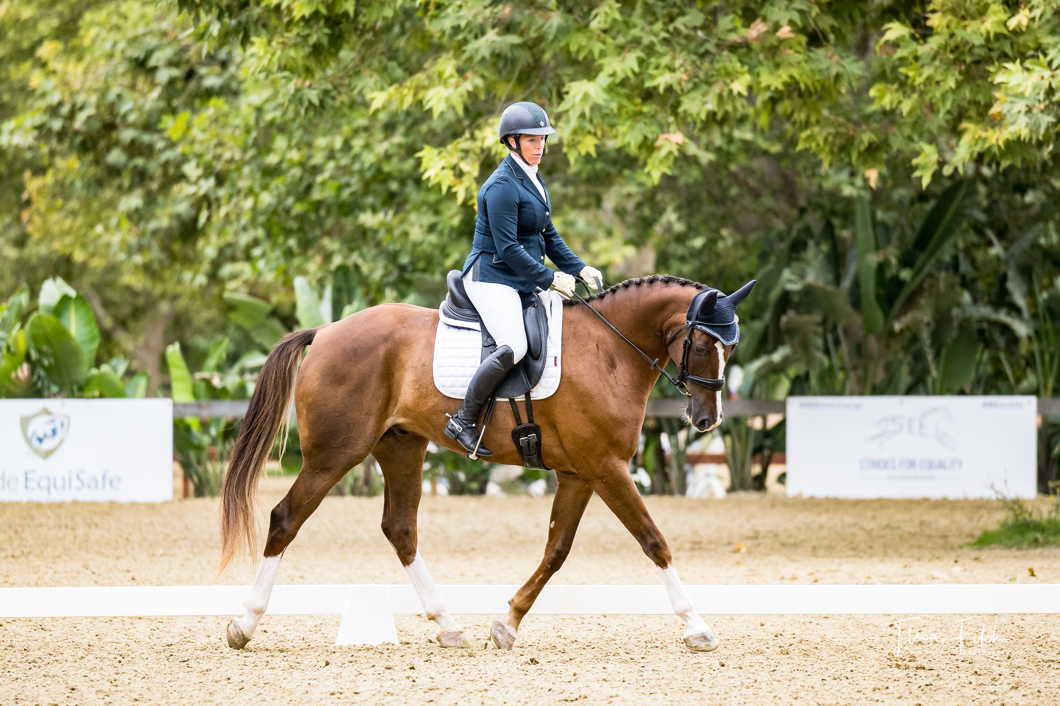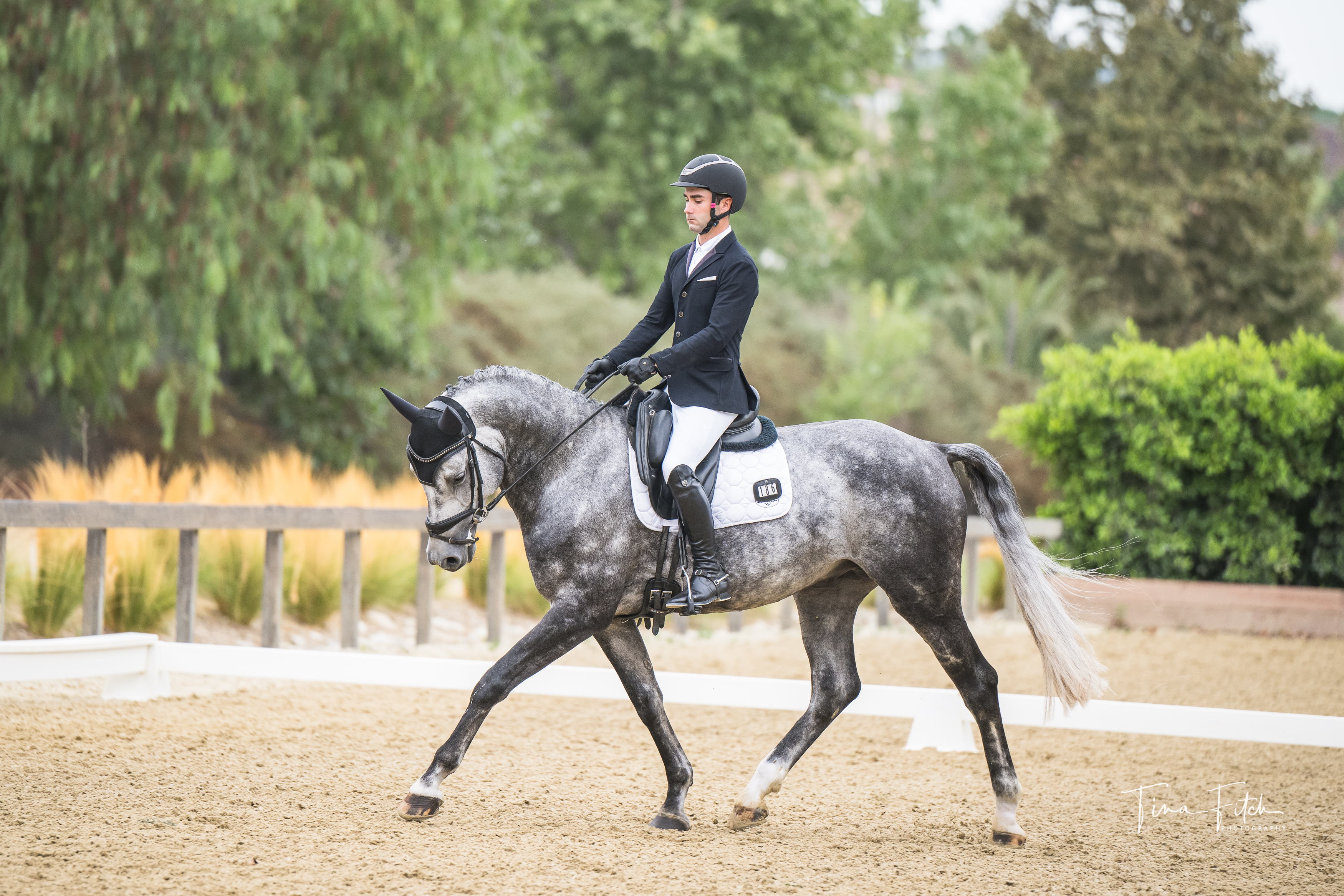 There’s a three-way tie after dressage evaluated by judges Vicki Stashuk-Matisi and Tiffany Silverman, who awarded a 24.9 to these three pairs–Temecula-based professional Chloe Smyth and Michelle Cameron Donaldson’s SR Myconos, an 8-year-old Warmblood stallion sired by Con Air; Kaufman, Texas-based Ellen Sebanc and her own 6-year-old Dutch gelding Orion RSF (Gaudi x O Baby), and Malibu, California-based professional Tommy Greengard and Sandra Donnelly’s Black Hole Sun, (Belshazar x Gemini V), a 5-year-old Canadian Warmblood stallion. This 21-horse division is closely packed at the top.