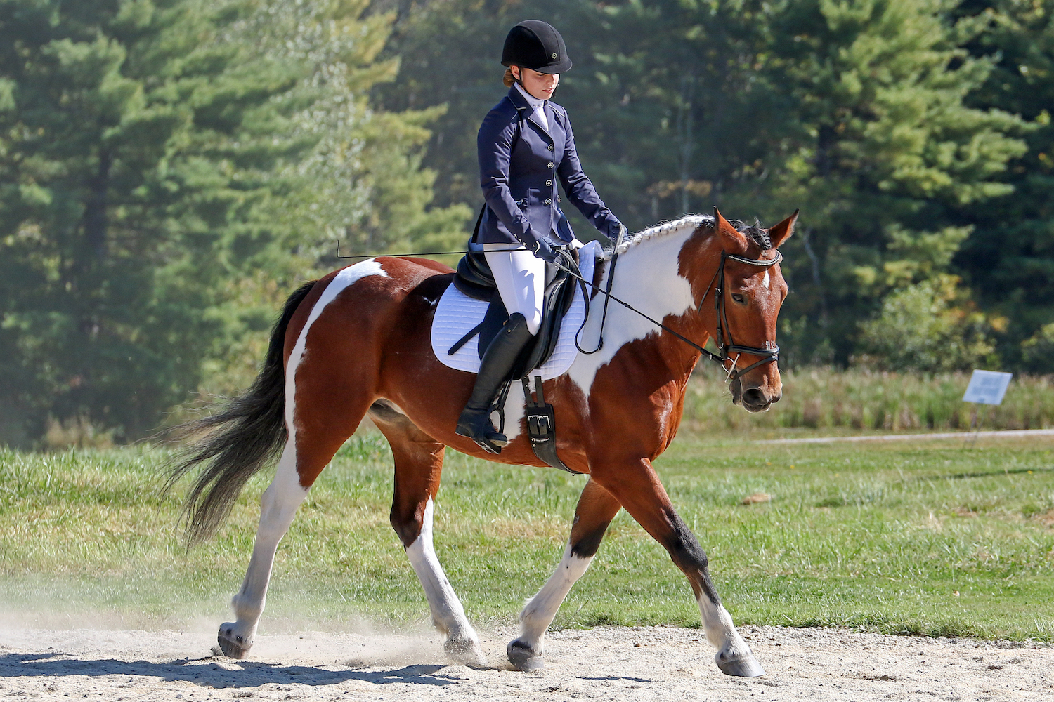 When my daughter Jacquelyn turned 9, she and I started taking riding lessons together for some quality mother-daughter time. I had hoped to share my love for horses with her so we gave it a try. A few years of lessons led to a deeper commitment - horsemanship - and Jackie showed the fortitude for the hard gritty work required. It didn’t take long for Jackie to catch the horse bug and then we found our match, Abby. She came to the farm to be a lesson horse. We found an instant affinity for Abby, a 16 hand draft cross mare with pinto markings. She felt like a trusting safe mount for two beginner riders. The depth of the learning curve is daunting when buying a horse for the first time. Our home farm, Hunter’s Haven Farm in Groveland, Massachusetts, helped us have a focus and Jackie and Abby began competing with the farm’s show team.