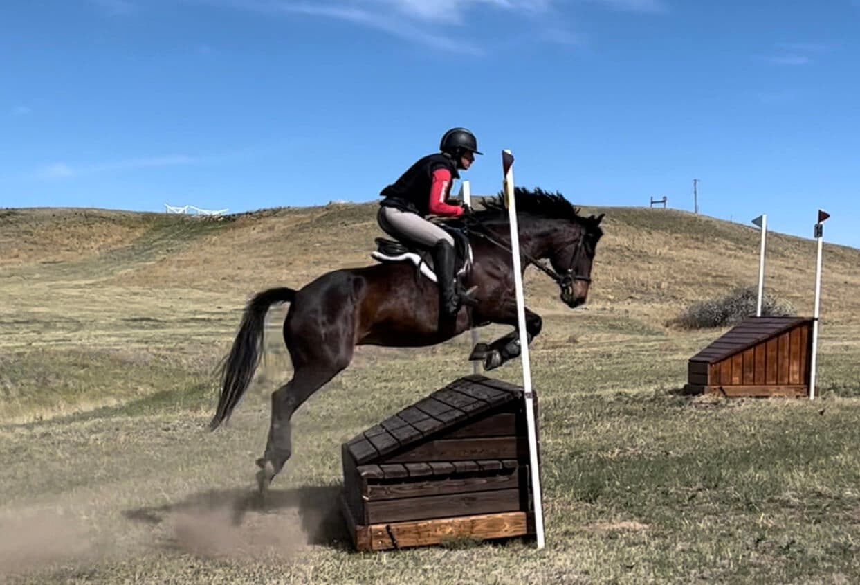 “She’s been in the ribbons in every event and very rarely has a cross-country penalty,” said Stone. “At Training level we qualified for the Rebecca Farms [Kalispell, Montana] three-day, but unfortunately she had an injury so we couldn’t go. Ever since then she’s taught lessons—my 9-year-old rides her—I’ve taught clinics and done demos with her. She’s registered with the American Warmblood and Sport Horse Society based on her performance record. She’s a really cool girl. I bred her to a Holsteiner and a Trakehner, and she’s being inspected for Westphalian. She’s kind of an unusual mustang mare and a pretty special one.”