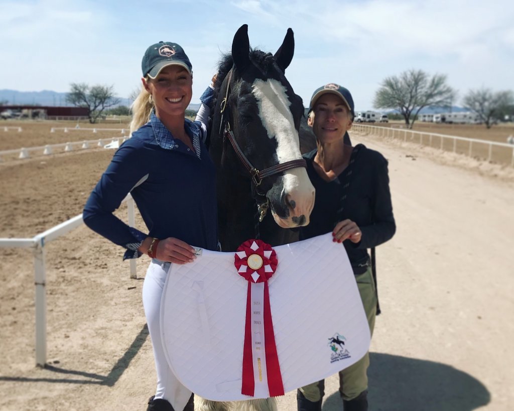 Romeo’s recognized eventing career began at the beginning of 2018 at the Southern Arizona Horse Trials, two hours away from Channing’s home in Scottsdale, Arizona. “We made a plan to have me pilot him around his first few horse trials until he learned the name of the game,” Lindsten explained. “Everywhere in between, Channing was responsible for making sure he was always well prepped for the events. Our goal was that through a balanced lesson and training schedule, when it came time for her to take the reins, the only thing changing would be the stirrup holes.”