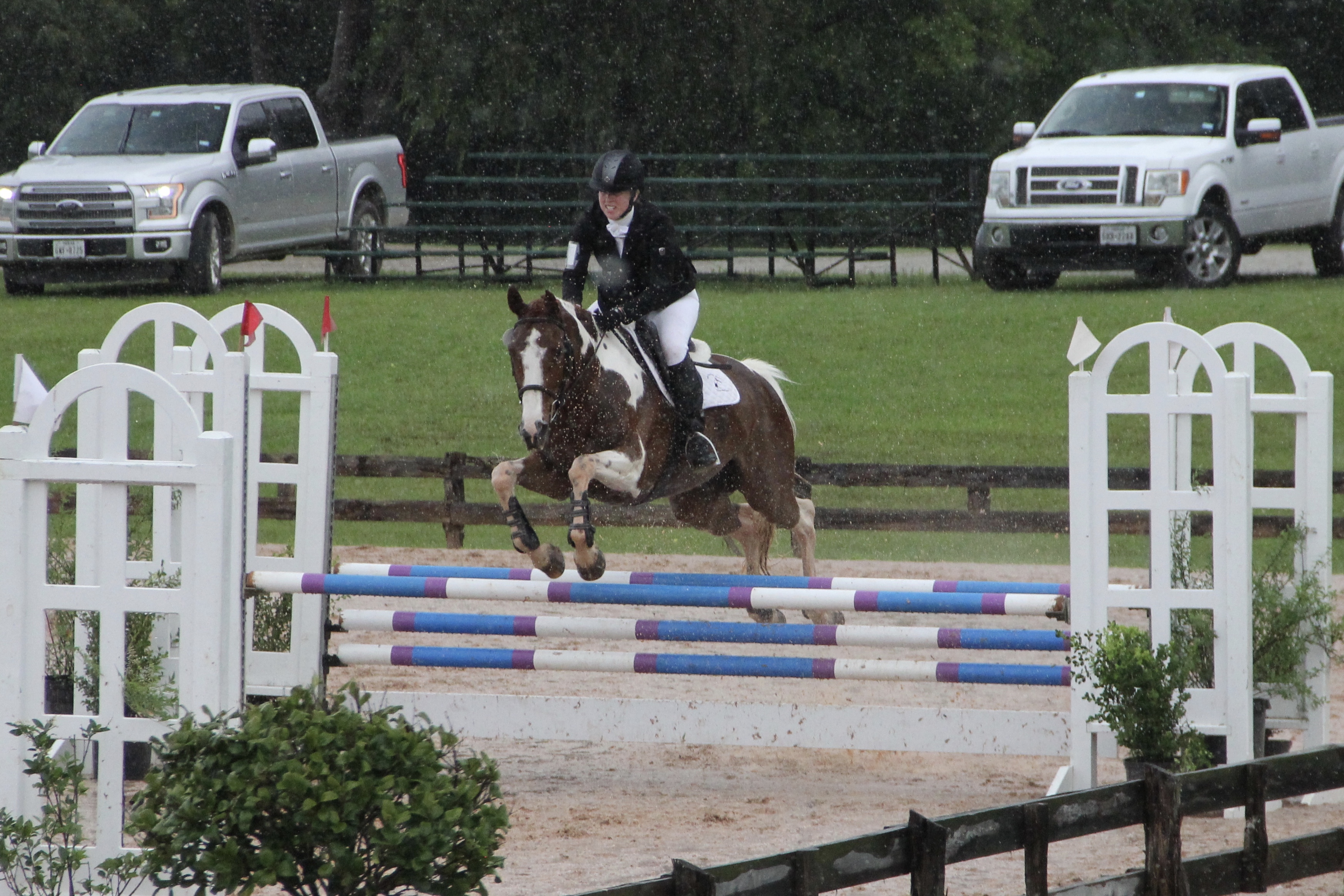 After several setbacks in training due to moving from New York to Texas, life/jobs, and a few injuries, we finally were on our way to being ready for our first schooling horse trial. Yes, she was already at age 8, but better late than never. Fall of 2017 we finally signed up for the 12” division. Sure enough, coming up to the first cross-country jump I was caught off guard as Aimslee decided the pumpkin in front of the tiny log was incredibly scary and she spun around faster than I could hang on. Oops. Not a good way to start our eventing career. But we theoretically could only improve from that.