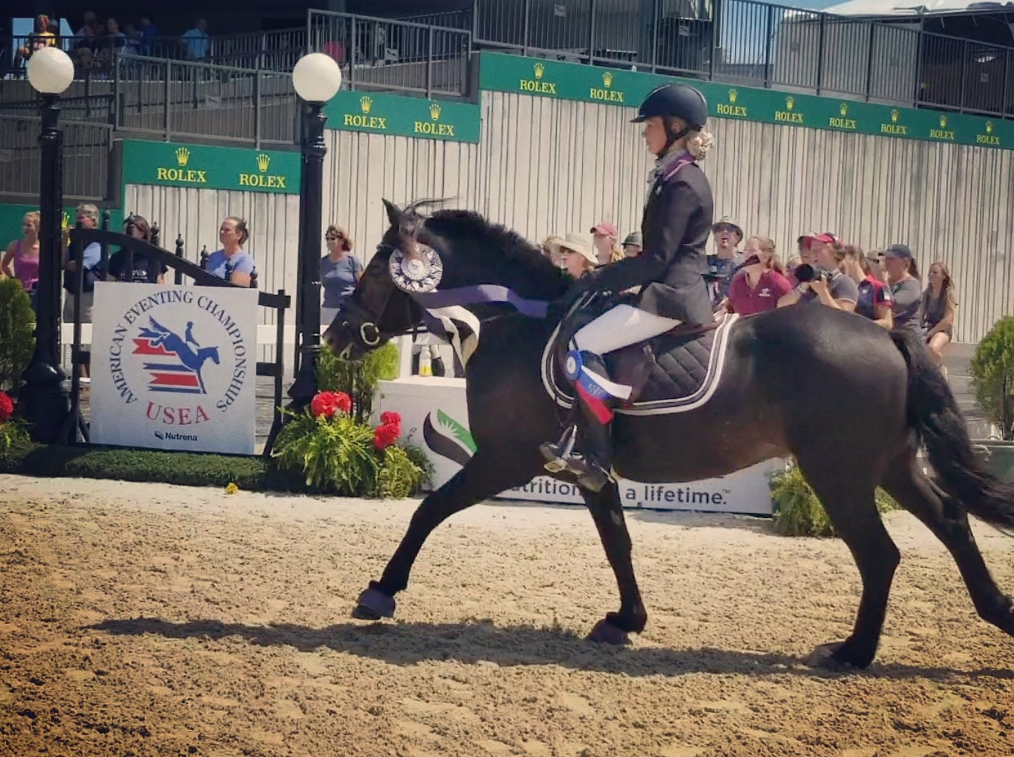 Mom (my trainer) asked me to focus on his dressage talents, get him fit, and put eventing on hold due to his age. Sound and happy, we kept moving on in dressage and tried qualifiers for the FEI Children's National Championships. Still unsure if we would finish in the top 12 to go to the Lamplight Festival of Champions, I started asking my mom to event him and try for the AEC. I used the argument he will only be older and I will be taller if we wait for next year! Mom checked in with my jumping instructor Stella Sunstein and she agreed he could go for it. Since Stella had just moved away she turned us over to her coach Kristin Schmolze for the shows.