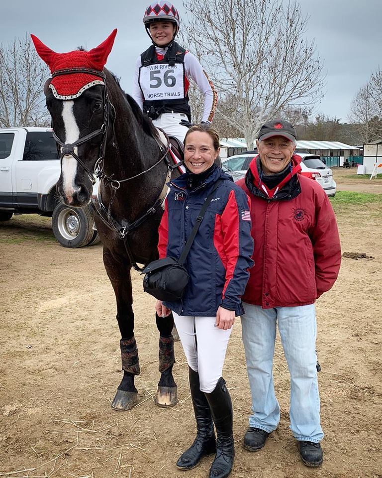 Dragonfire had traveled to the Fresno County Horse Park (FCHP) for their combined test at the end of January and Jen sprung it on Taylor that she would ride Billy that weekend. “We were already at Fresno when my mom said, ‘Why don’t you take Billy for a show jump round to see if you can ride him?’” Taylor said. “I’ve ridden him at home before, but I’ve never done a full course. I did my first show jumping course on him at Training height and it actually went really well – we went clear! After that my mom said, ‘Alright, I trust you. If you want to try hard, I think you can qualify and go Preliminary on him before your birthday. I think you’re ready and you’re capable.’”