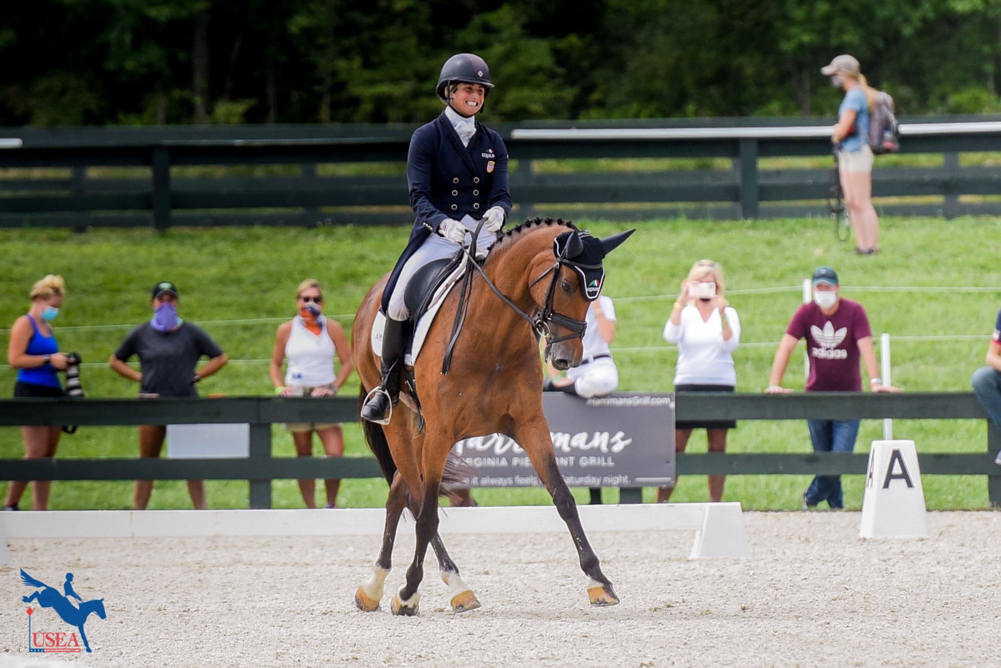 Also hot on the heels of the leaders is Kim Severson and her longtime partner Cooley Cross Border who scored a 22.1 for third place. “I think ‘Crossy’ is happy to be out, huh?” said Severson of the Cross Syndicate’s 13-year-old Irish Sport Horse gelding (Diamond Roller x Whos Diaz). “He's learned a lot in the last year and a half – he's solidified a lot of things, in particular, his flying changes. He finally fixed his once change that I struggled to get. He needs to be a big stronger in his medium trot – that's always been his weakest thing, so we're still working on that.”