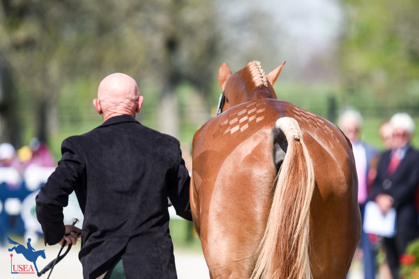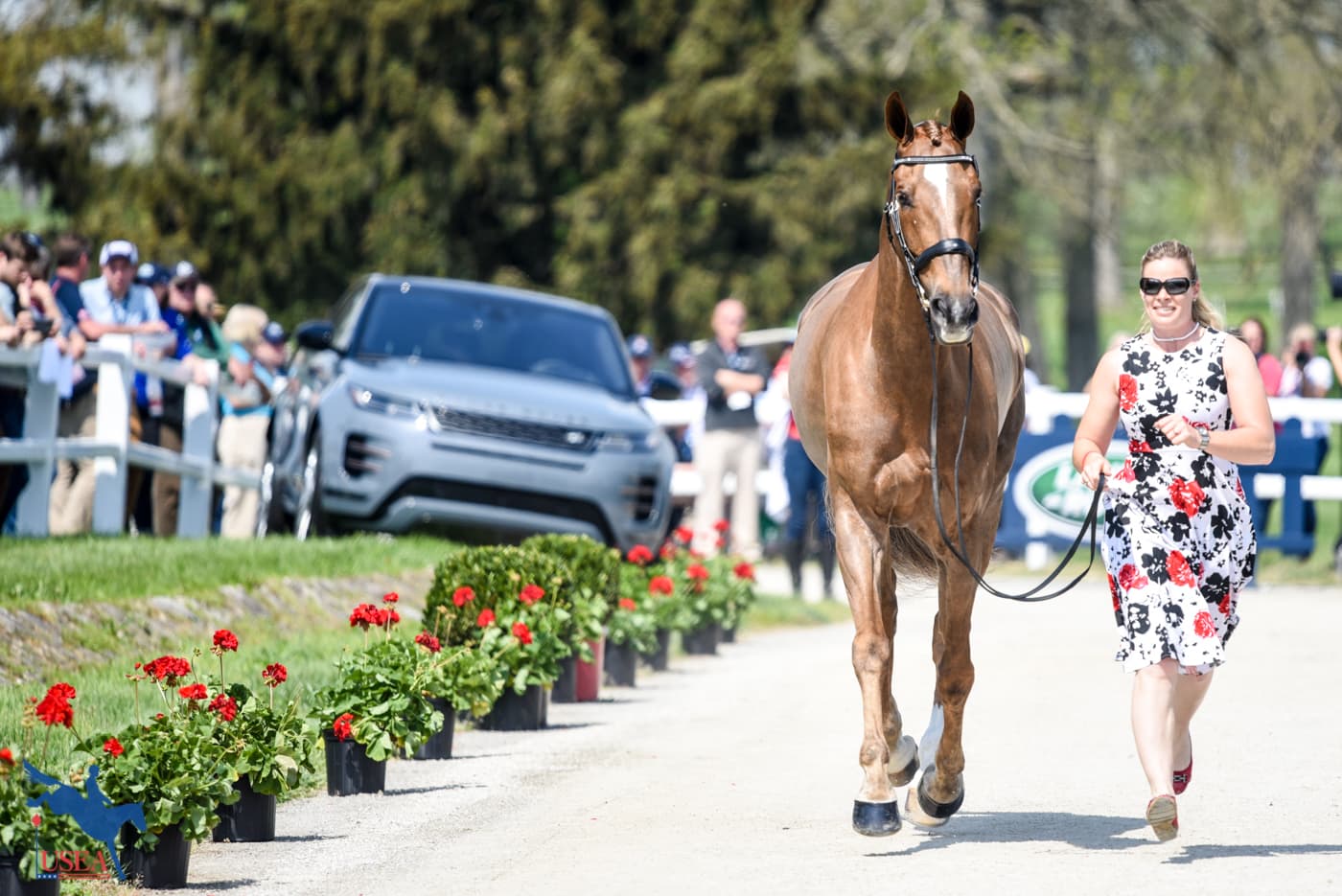 Forty-one horses move forward from the first horse inspection at the 2019 Land Rover Kentucky Three-Day Event at the Kentucky Horse Park in Lexington, Ky. Forty-two horses were presented, three were sent to the hold box, and unfortunately, one was not accepted upon re-inspection. With just 41 horses entering the dressage arena across the next two days, this marks the smallest field of horses at the Land Rover Kentucky Three-Day Event since 2008.