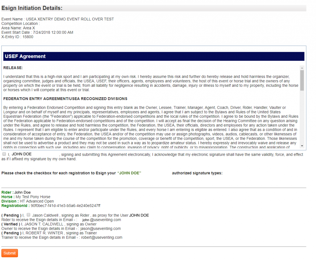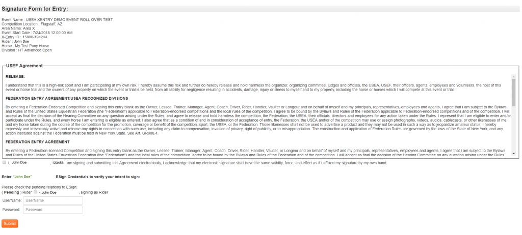 Riders will now be able to submit their entries entirely online with the new eSignature feature of Xentry.