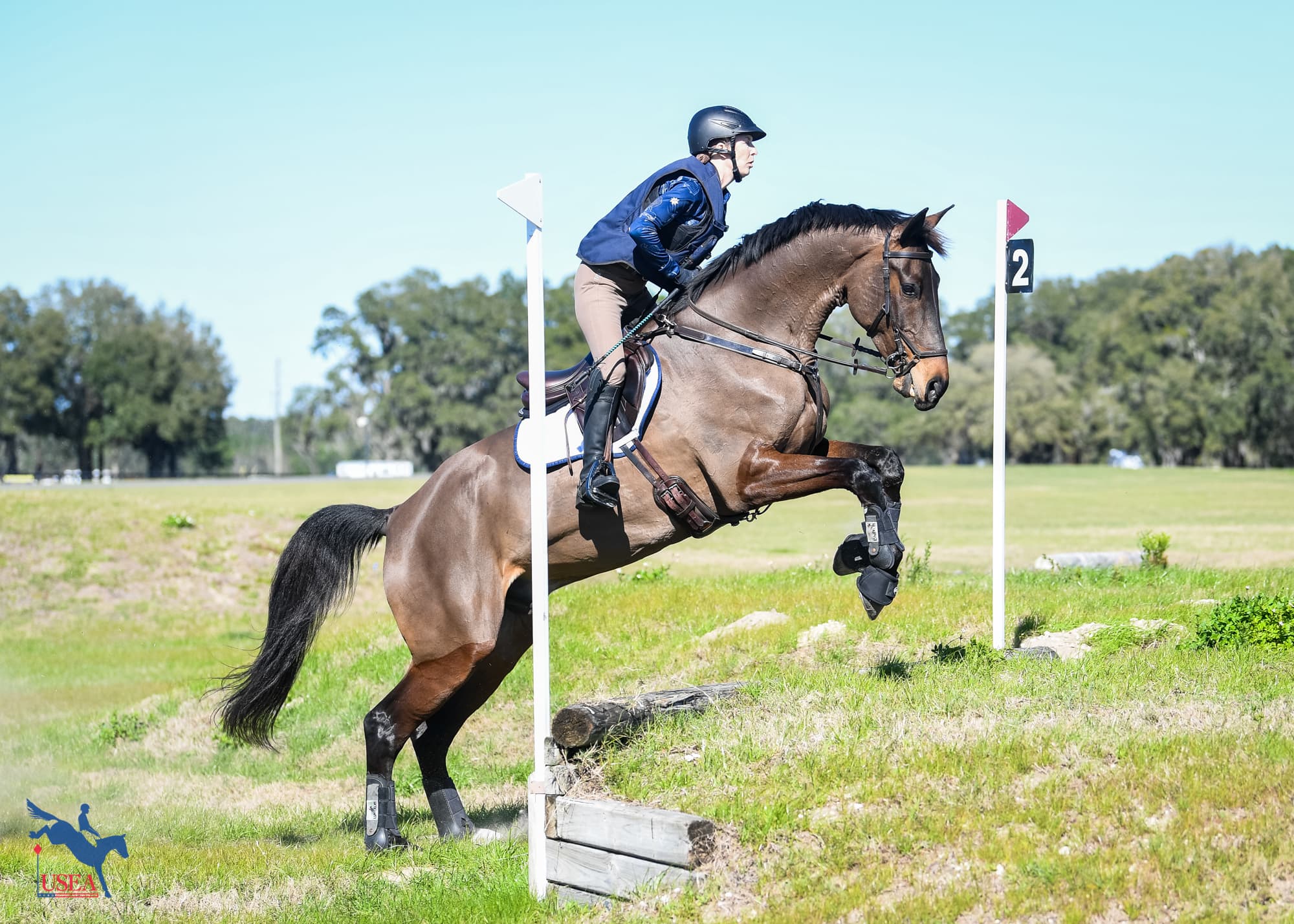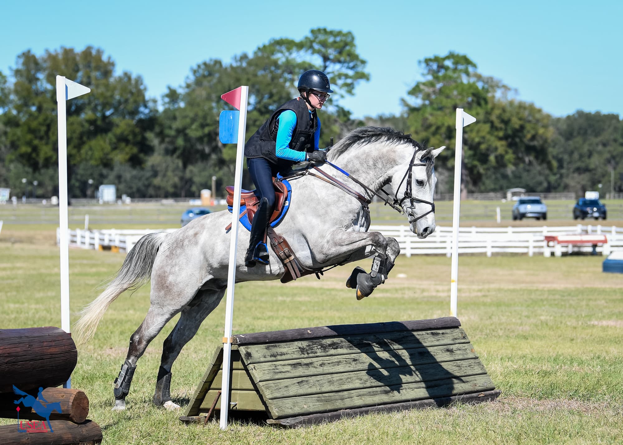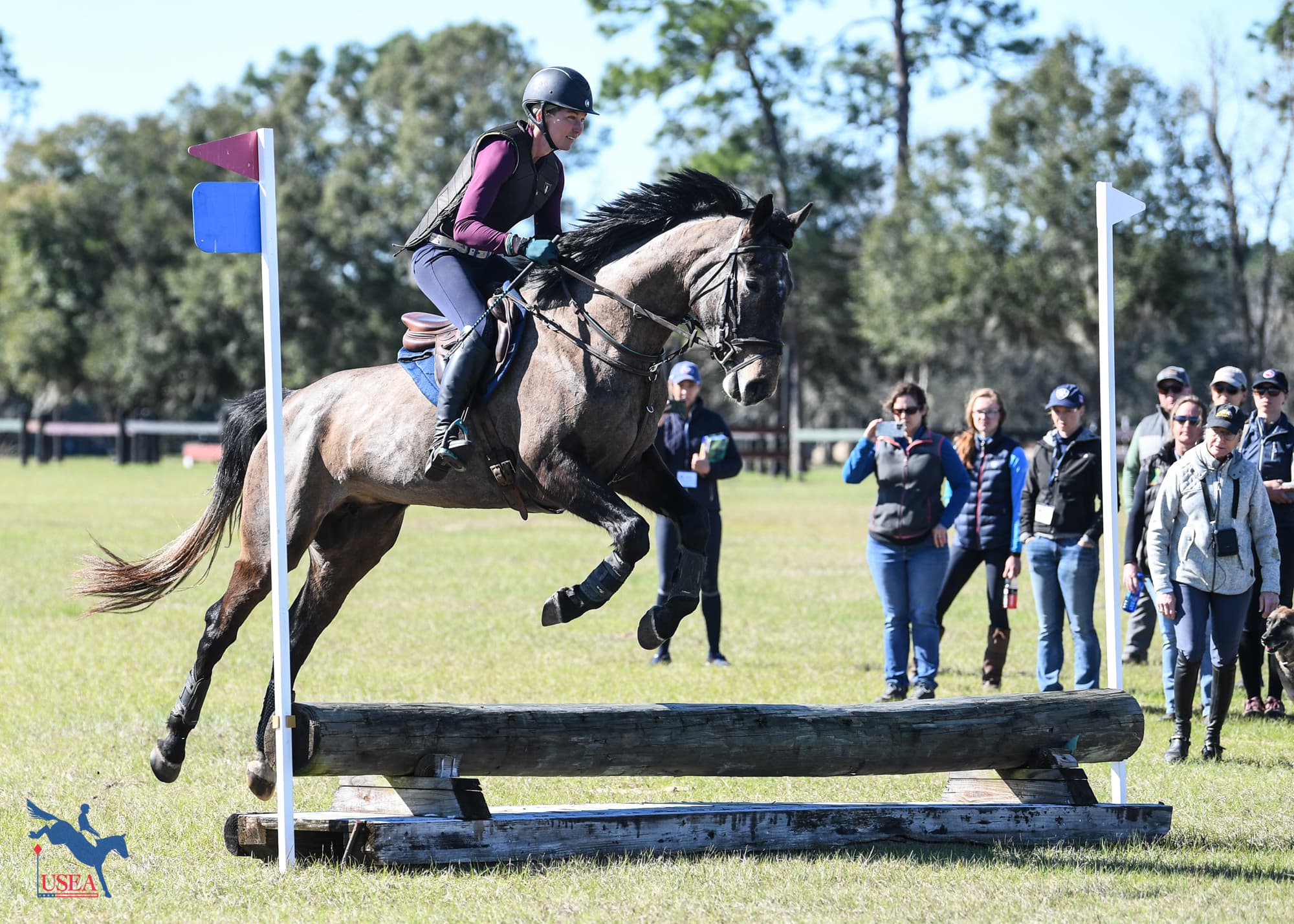 O’Connor coached her and had her “walk, trot, pop” over a small log. She encouraged her to “row the boat” with her arms when riding any green horse towards a fence they might be unsure about and to give the mare plenty of time in a straight approach to see each jump since green horses think slower.