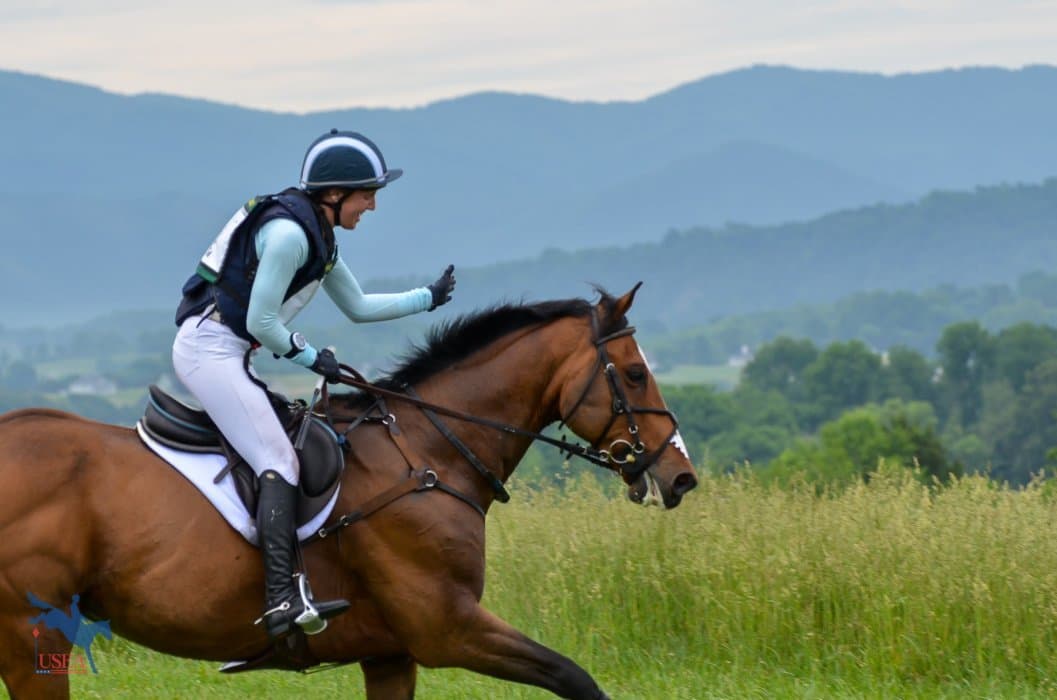“My one and only,” Kramer described her 16-year-old Thoroughbred gelding, Kentucky Gentleman (Doneraile Court x Northern Voyager), who is winning the Novice Rider division, the largest division at Virginia Horse Trials with forty entries. “He was my first real event horse.” Kramer and Kentucky Gentleman have been together for over six years and as Intercollegiate Championship first-timers they have surpassed everyone’s expectations.