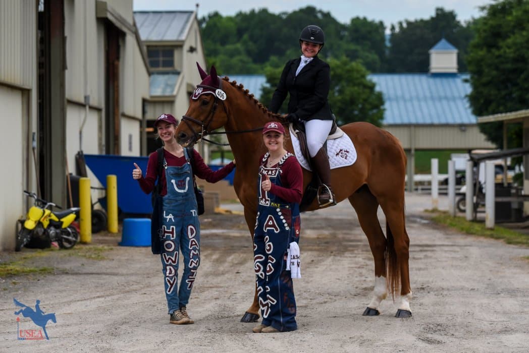 The USEA Intercollegiate Eventing Program was established in 2014 to provide a framework within which eventing teams and individual competitors could flourish at universities and colleges across the country. The USEA offers a discount of $25 on annual USEA memberships for current students of universities and colleges registered as Affiliates with the USEA and many events across the country now offer Intercollegiate Team Challenges throughout the year, where collegiate eventers can compete individually as well as on teams with their fellow students. In Intercollegiate Team Challenges, each rider’s score is multiplied by a coefficient appropriate for their level to account for differences in level difficulty and then the individual scores are added together to determine the team score. Click here to learn more about the USEA Intercollegiate Eventing Program.