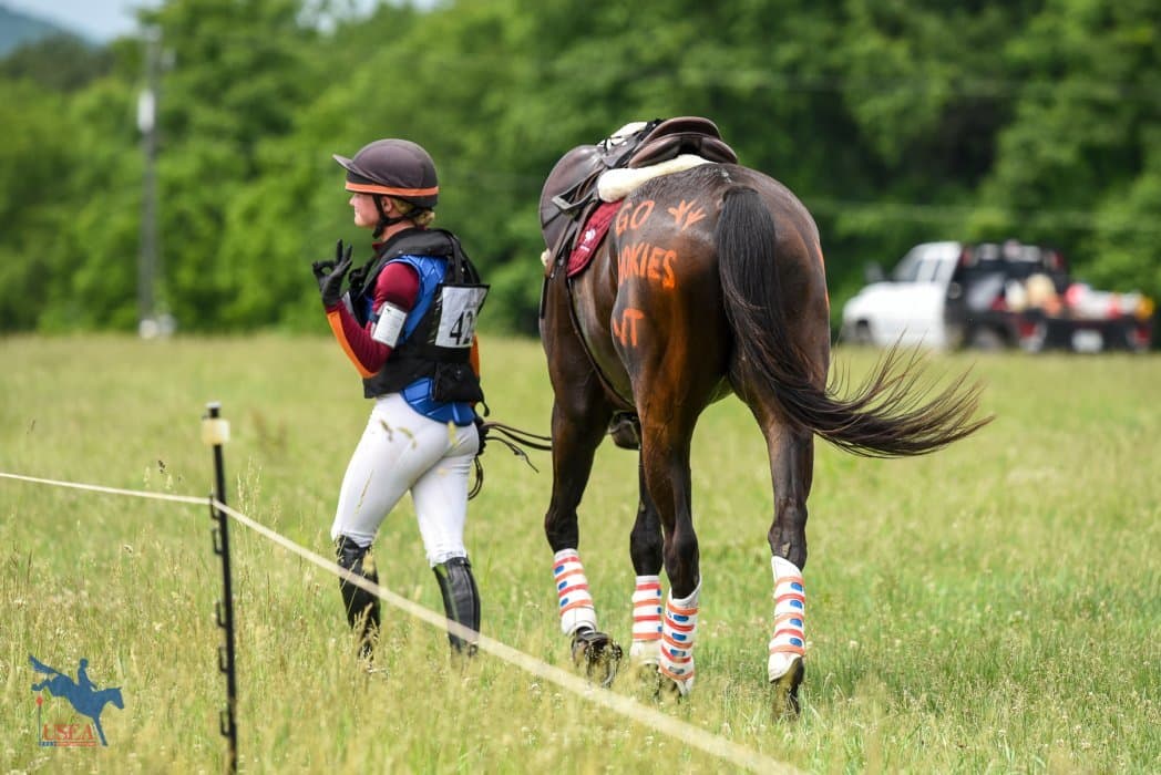 History repeats itself for Auburn and Clemson Universities who have been familiar with sitting in the top spots at the USEA Intercollegiate Eventing Championship. A sea of orange filled the Virginia Horse Trials on Saturday, May 26 while the Auburn Orange Team threw down four strong performances to sit comfortably in first place on a team score of 89.05. Taking the early team lead were Auburn Orange team members Sallie Johnson, Aubrey Wagner, Lydia Kennedy, and Meredith Kramer. Another orange team are the defending champions, Clemson Tigers, who are fighting to reclaim their title as they currently sit in second place on a score of 93.73 in the 2018 Intercollegiate Championship. University of South Carolina, Aiken rounds out the top three for the team standings on the second day on a score of 96.51.