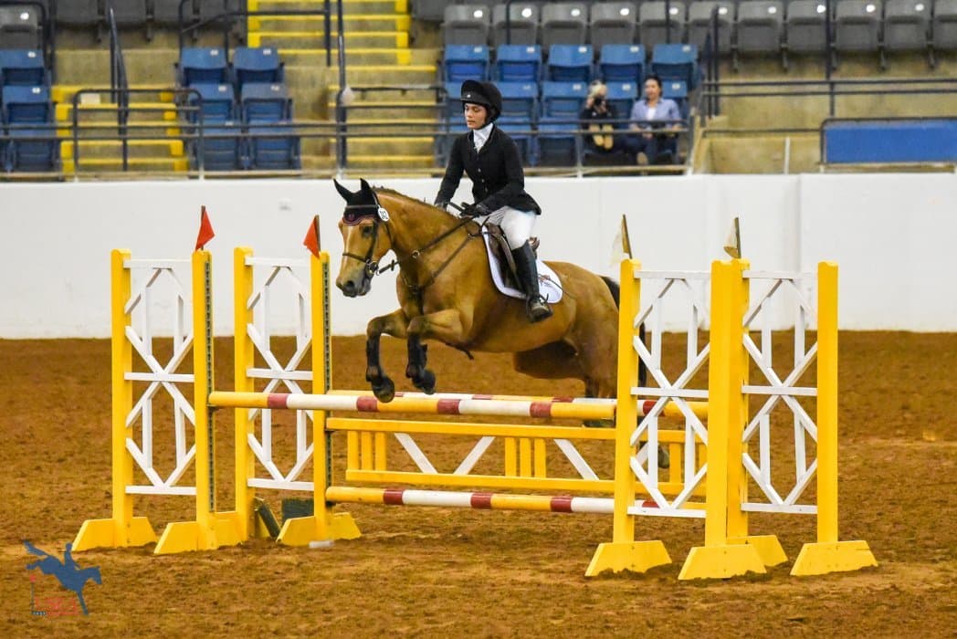 “Today went really well,” said Webb, who is currently winning on a 29.7 in the Open Beginner Novice division on Pelear Por Oro (aka Pea), Becky Caravan’s 9-year-old Arabian gelding. “My horse was given to me, he was a rescue.” Coming a long way from being a giveaway horse, Webb believes their strong partnership is what has brought the success.