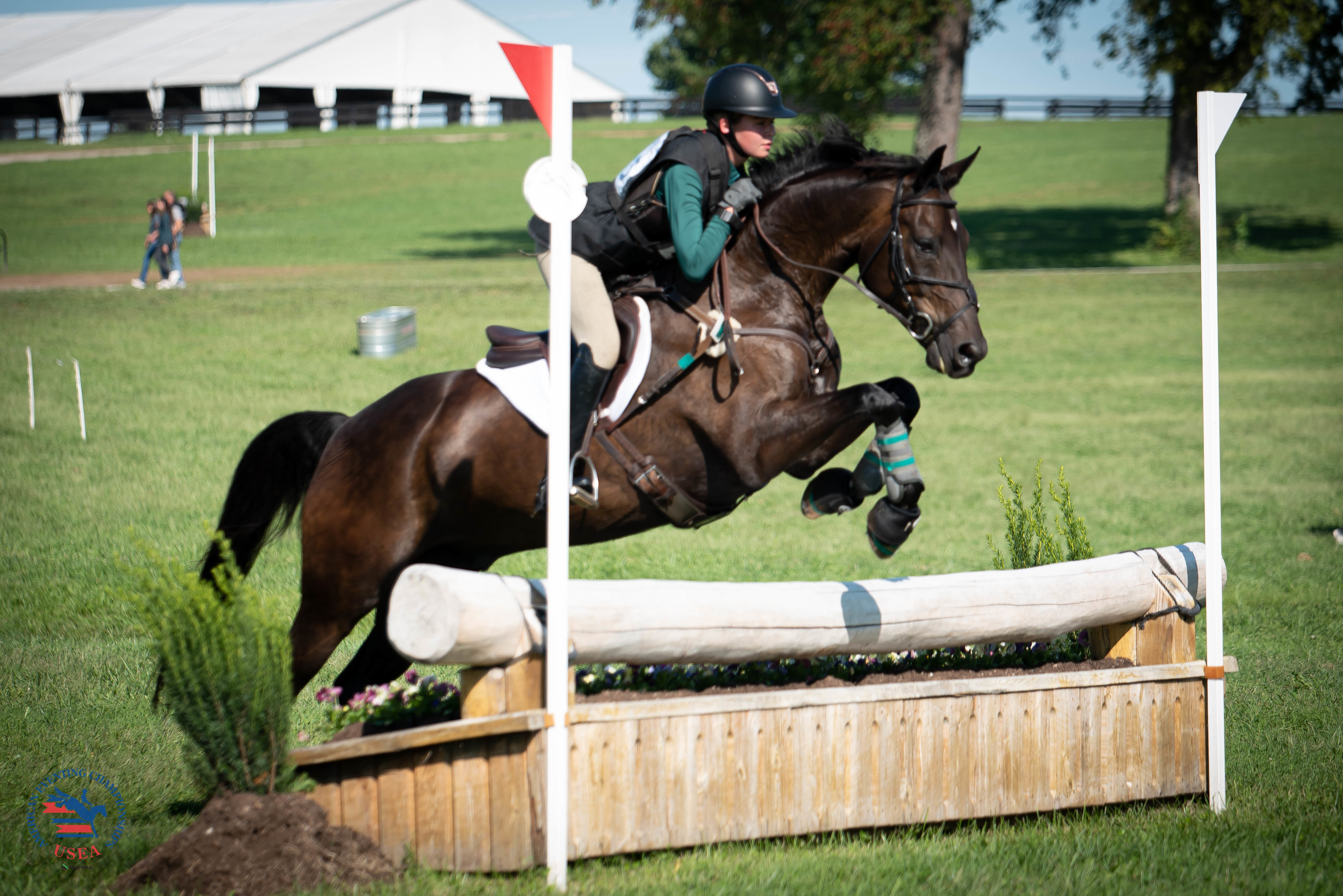 For Immediate Release: Novice competitors donned their safety vests and sported their favorite colors as the sun rose over the cross-country track Friday morning. With the first of six divisions kicking off at 8:00 a.m., the famous head of the lake saw rider after rider through later in the afternoon. While there was some shuffling of placings, the overnight leaders from dressage in each division held onto the coveted top spot upon the conclusion of their cross-country tests.