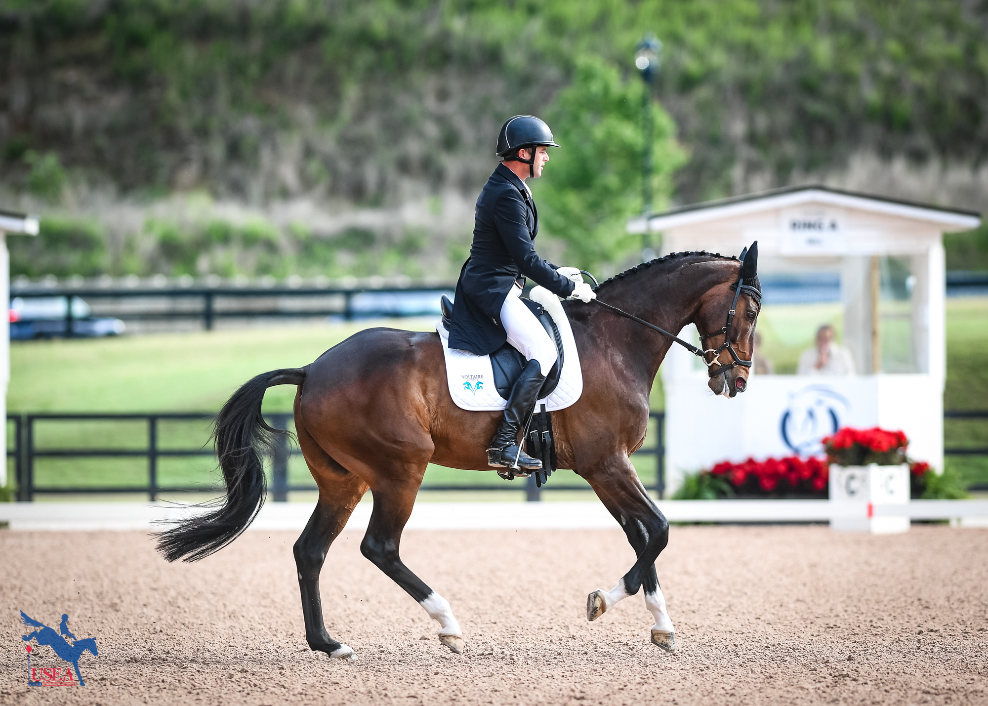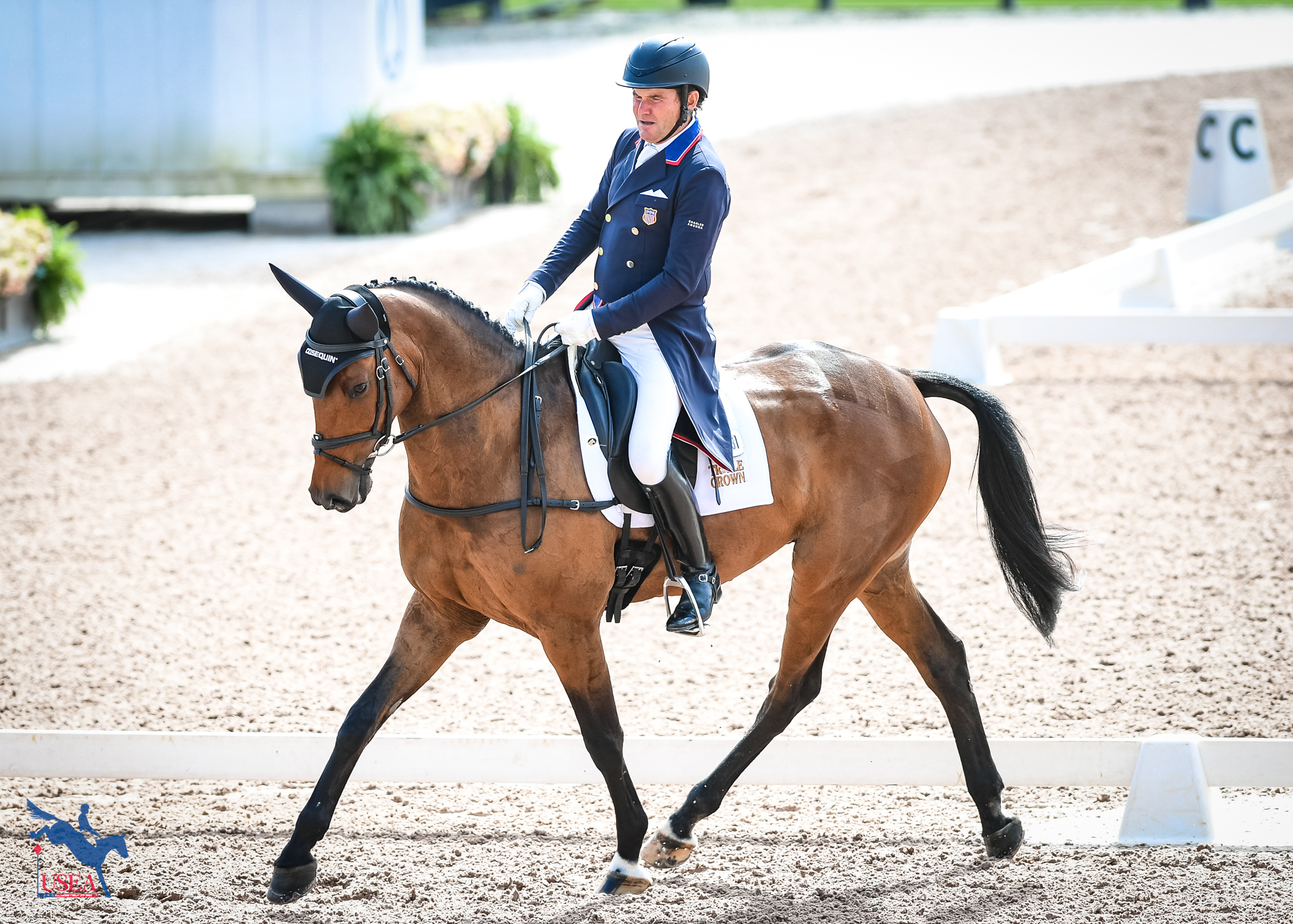 Dutton brought Denim to Tryon to get another CCI4*-L under his belt, and they’re well-positioned after dressage.