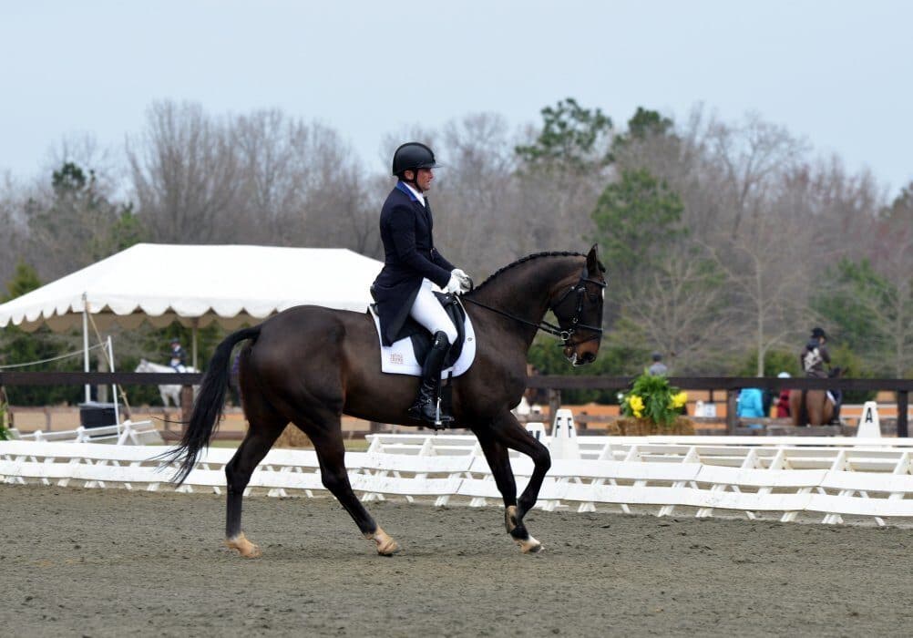 Phillip rode Kristen Bond’s mount I’m Sew Ready, owned by John and Kristine Norton, to the overnight lead after dressage with a score of 43.1. Phillip first acquired the ride when Bond found out that she was expecting, and has continued to ride the 11-year-old gelding in the first few months after Bond’s son was born. Phillip also rode Bond’s Seams Ready in the 3* division, who is tied for 37th.