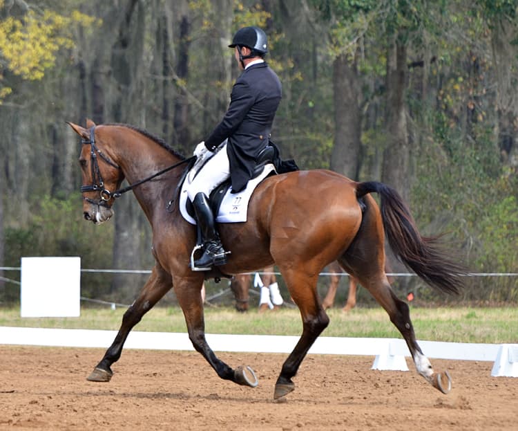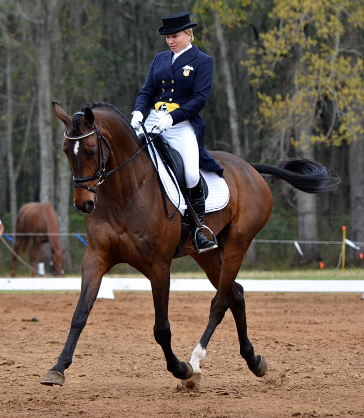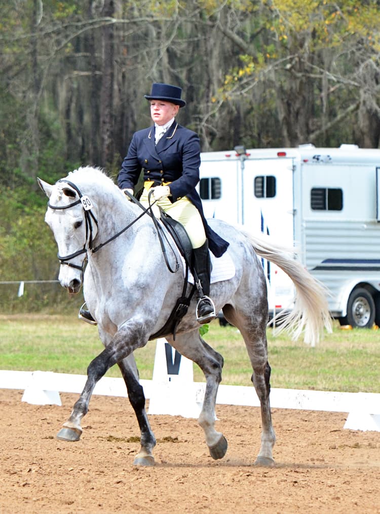 “Mystery Whisper just arrived here from Australia at the end of 2011,” explained Phillip. “He was bred, ridden, and trained by a good friend of mine, Heath Ryan, and Mystery was bought by the Wildasins for their daughter, Arden, to ride and in a weak moment Arden told me I could ride him for a few months, so we’ll see how that goes. This event is the first step to getting him qualified for the Olympics, so we will take it one step at a time. It is very exciting to have a horse this well schooled, I think he knows more about dressage then I do.”