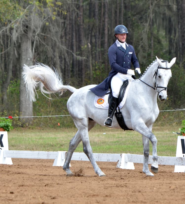 Mystery Whisper, a 12-year-old warmblood gelding (Richmeed Medallion x Socialite), was the second of Phillip’s three rides in the three-star who all scored in the top ten this weekend. In total Phillip has eight horses entered this weekend in Tallahassee, Florida; however, Mystery Whisper may be one of his newest partnerships.