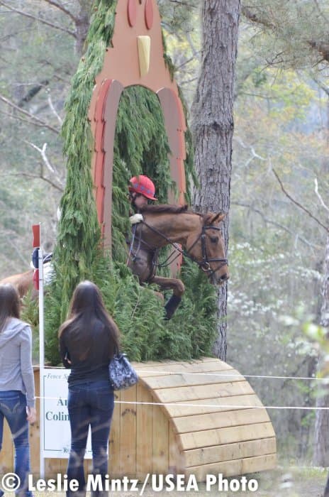 According to Marilyn, RF Demeter felt great on the first part of the course, but landed from fence six and locked onto a tree in her path. Despite Marilyn’s best efforts Demeter was determined to head towards the tree, and she tripped over the landscaping and sent Marilyn flying into the tree. Luckily both walked away unharmed from their foray into “Tree-Day Eventing.”