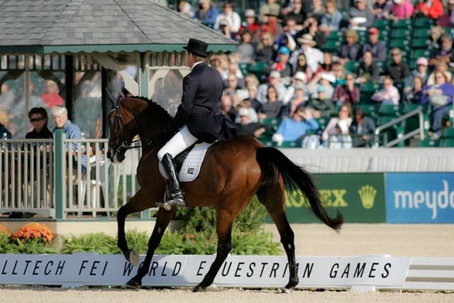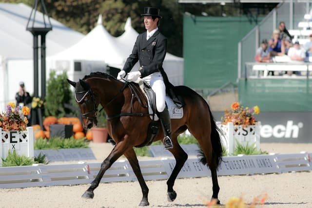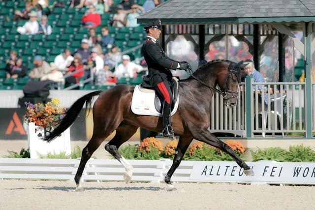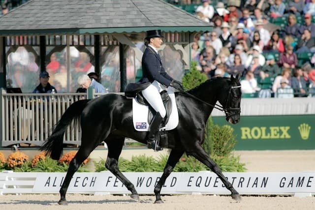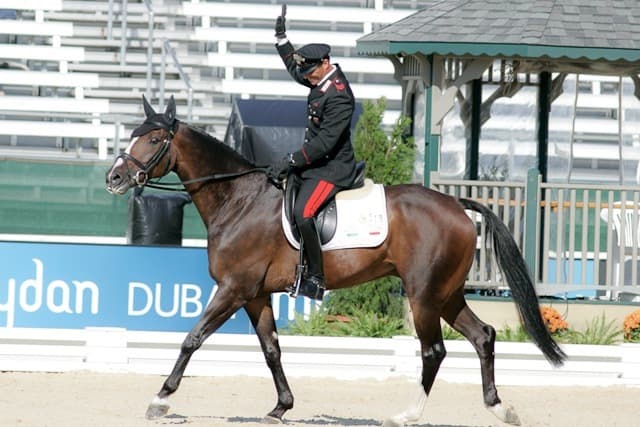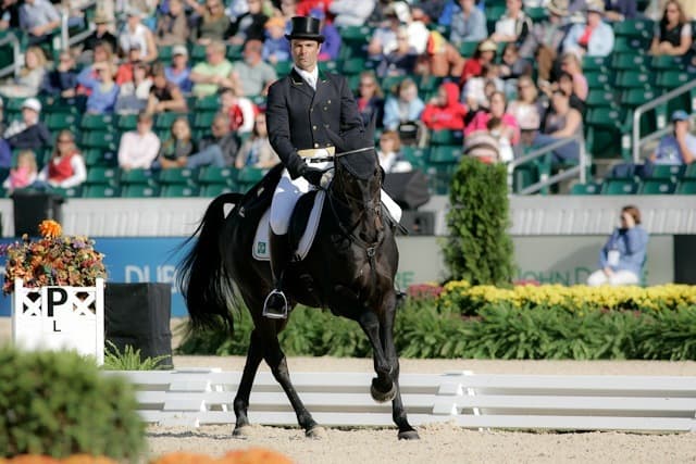 The scores continue to get better and better as the competition heats up at the 2010 Alltech FEI World Equestrian Games at the Kentucky Horse Park in Lexington, Kentucky. After the morning session of the second day of dressage, we have a new leader: Stefano Brecciaroli of Italy aboard Apollo van de Wendi Kurt Hoeve. The pair had a breath-taking test to earn a 35.5, slipping ahead of overnight leaders Simone Deitermann (GER) & Free Easy NRW by just 0.5 points. Niklas Lindback (SWE) and Mister Pooh scored a 39.5 to take over the third spot. Mandiba performed brilliantly for U.S. team member Karen O’Connor, and they currently sit in 12th with a 44.8. Individual Standings. Nation Standings. Josh Walker photos.