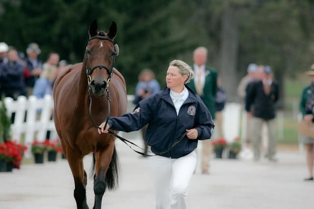 The atmosphere was tense during the chilly final horse inspection this morning at the Alltech FEI World Equestrian Games in Lexington, Kentucky. The entire U.S. team passed, and they remain in the silver medal position heading into show jumping this afternoon. Unfortunately, Courageous Comet (competing as an individual for the U.S. with Becky Holder) was sent to the holding box for re-inspection, and Becky subsequently decided to withdraw him from the competition. Josh Walker photos.