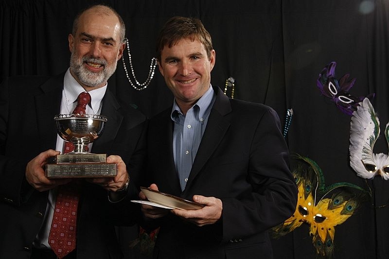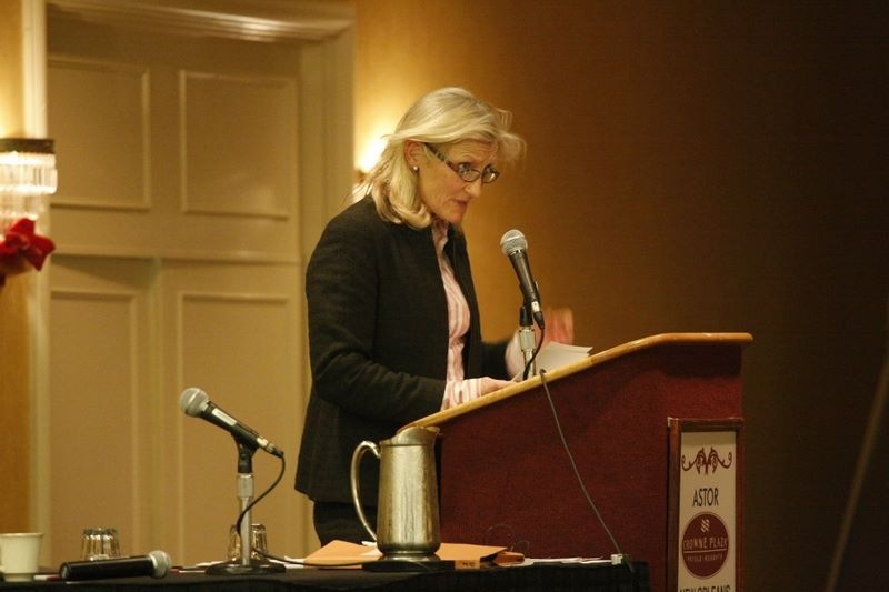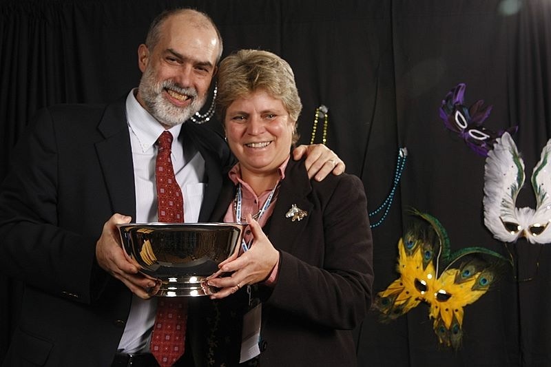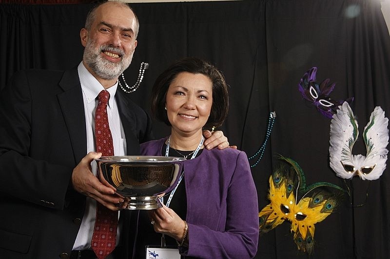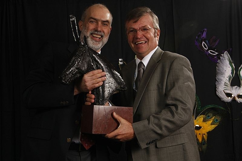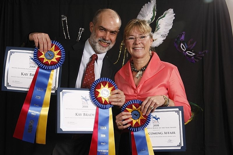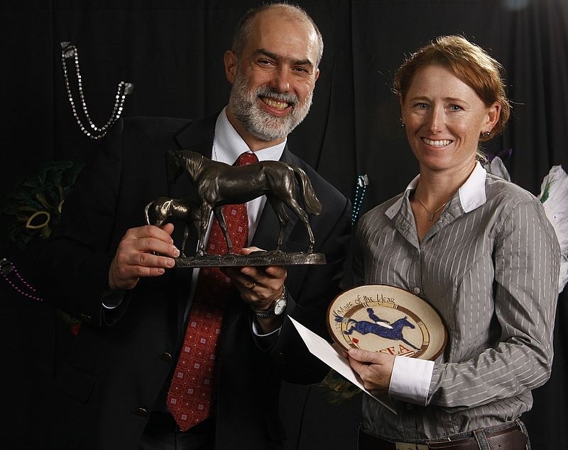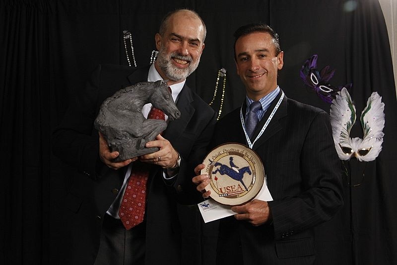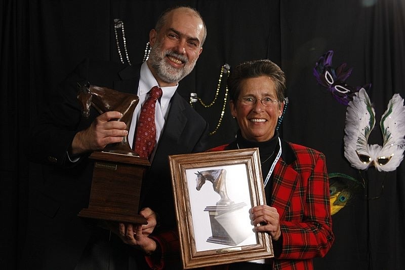Yes, that's snow you see outside the Astor Crowne Plaza in New Orleans!Convention attendees help themselves to the tasty buffet during the Board of Governors Welcome Reception on Thursday night. That fruit display was hard to pass up...Good times were had by all during Thursday night's festivities!A local musician set a jazzy mood for the Friday night Area III "Masked Event"Partygoers grabbed masks at the door or showed up in their own...and then the fun began!J.J. Johnson got the crowd revved up at the event.Most people wore their masks on their faces...but there's always a rebel in every bunch.USEA President Kevin Baumgardner welcomed our keynote speaker Lucinda Green with open arms on Saturday.Lucinda's passion for the sport and love of horses was evident during her heartfelt speechSaturday's Award Luncheon was a time to celebrate competitors who've had an exceptional year and loyal members who contribute so much to our sport.Rohena Armstrong won the Adult Amateur Worth the Trust Scholarship.Kay Brady had an exceptional year at the Beginner Novice topping the national leaderboards in the Master BN Rider & Master Amateur BN Rider sections, while her horse Homecoming Affair won top BN Horse.Elisabeth Mehner and her horse Good Day Gali won awards on the Novice leaderboards.Bethany Myers receives her award for being the top Junior Training Rider in the nation.Callie Judy's had a wonderful year, and took home top honors in the Junior Preliminary Leaderboard.Jennifer Brannigan & her horse Cooper (who unfortunately couldn't make it to "N'awlins") cleaned up on the Young Rider Intermediate & Intermediate Horse leaderboards.Ronald Zabala-Goetschel was the national Master Amateur Advanced Rider.Jennie & Cooper also won the Intermediate Adequan/USEA Gold Cup Series, and accepted the award from President Baumgardner and Allyn Mann of Luitpold Pharmaceuticals, Inc., the makers of Adequan®Tory Smith won the Advanced Gold Cup with her horse Bantry Bay V. Here she shares the spotlight with her good friend Jennie.Kevin presents Becky Bowen with a Governors Cup. The USEA Governors' Cups are presented annually to the volunteers who form the backbone of eventing. These are individuals who labor tirelessly behind the scenes at the many jobs associated with the running of the sport.Always smiling and cheerful, Patte Clement accepts her Governors Cup.Jackie Fisher Smith got to accept her son's Worth the Trust Scholarship (Young Adult) earlier, and then got to accept her own Governors Cup!Carol Kozlowski serves on the USEA Board of Governors, is VP of Safety, a talented rider and trainer, and now the owner of well-deserved Governors Cup. Marty Whitehouse accepts the Courtney Reeves trophy. This trophy is awarded to the young individual who exemplifies sportsmanship, the spirit of the sport, and who gives back to the sport.Aaron Rust wins some new equipment for winning the Posthole Digger Award.John Williams had an overwhelming majority of the popular vote, which gave him the honor of accepting the Neil Ayer Course Designer's Award. This award commemorates Neil's passion for cross-country design and is presented to a cross-country designer in recognition of their innovation and vision.The As You Like It Above and Beyond Award is presented to a horse owner who has competed at the preliminary level or higher and has gone "above and beyond" in support of their rider(s), helping them achieve their goals. Thom Schulz & Laura Coats, owner of McKinlaigh, proudly accept this award.Lefreda Williams accepted the Andrew H. Popiel Memorial Award. This award is donated by the Popiel family in memory of legendary organizer Andrew Popiel, honors the unsung heroes of eventing—the organizers. Nominees were chosen by Area personnel from a list of current organizers.Ralph Hill was his usual smiling, jolly self as he accepts the Ironmaster Award, a special award given to the person who exemplifies courage and fortitude.Malcolm Hook won the prestigious Wofford Cup, an award given each year by the Wofford family to honor someone whose service to the sport has made a profound impact. Past Wofford Cup winners choose new winners each year.Jennie Brannigan took home top honors for Young Rider of the Year.Ronald Zabala-Goetschel was Adult Amateur of the Year.Jennifer Wooten accept the Mare of the Year award on behalf of her talented partner The Good Witch.Phillip Dutton won his ninth (or tenth??) USEA Rider of the Year award.USEF Director of Executive Sport Programs presents Appreciation Gifts to owners and riders on the Olympic Team - here he presents Karen O'Connor an award.Gina Malito accepts the Pony of the Year award for Woodlands Silver DollarUSEA members vote during the Annual Meeting on Saturday afternoon.The U.S. Olympic team shares their ups and downs of their experience in Hong Kong, and the video & photo re-cap of the Games brought a swell of emotions from the team members as well as their fans.During the live auction on Saturday night, several lessons with top riders including Boyd Martin, were auctioned off to the highest bidder. Boyd got the crowd pumped and the bids poured in!One special item to be auctioned off was a bracelet made by Sarah Kelley, which is woven from Theodore O'Connor's tail. The bids were high, but in the end Howard Simpson won the bracelet (via a phone bid!) and gave it to Karen O'Connor. Half the money went to horse pulmonary hemorrhage research and the other half will be used to send a talented horse and rider team to Burghley for valuable international experience.