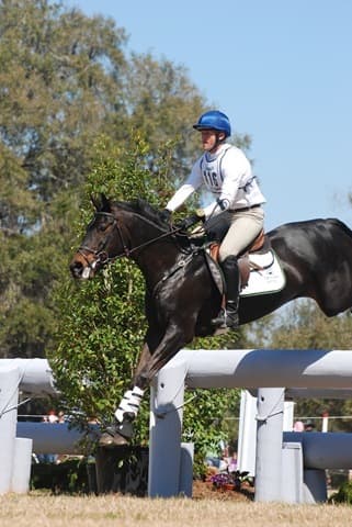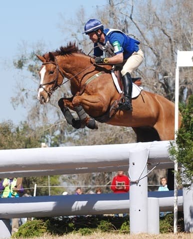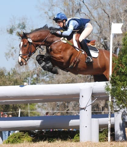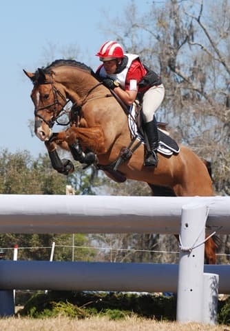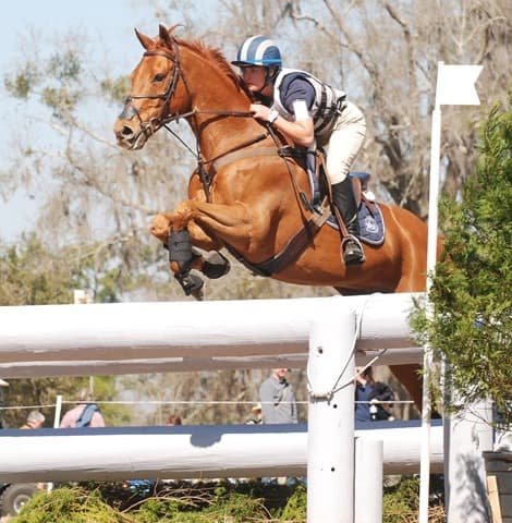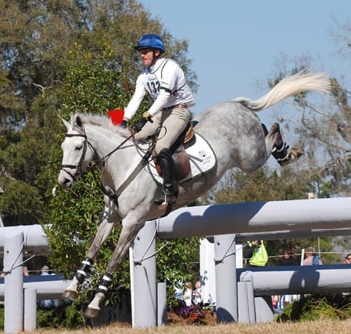 Hannah Sue Burnett and Dick Thompson’s feisty Thoroughbred gelding St. Barths posted a quick and tidy round on cross-country day, adding just over 12 time penalties to their dressage score of 46.4, to hang onto first place heading into Sunday’s show jumping round in the Red Hills CIC2* in Tallahassee, Florida. Michael Pollard and Jos Calfun are less than a rail behind, while Phillip Dutton and Lioness sit in third heading into the final phase of the competition. Emily Daily photos.