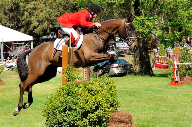 Allison Springer and Arthur reigned supreme during this afternoon’s grand finale at Red Hills CIC3* in Tallahassee, FL, the first leg of the 2011 Adequan USEA Gold Cup Series. Though they had a few close rubs, the pair left all the rails up to finish just ahead of Boyd Martin and Neville Bardos, who also had a fault-free round. In fact, all five of the top placing riders put forth double-clear rounds. Check out the photo gallery of the top ten riders. Final Results. Leslie Threlkeld photos, Pictured: Allison Springer & Arthur finish with a score of 53.3.
