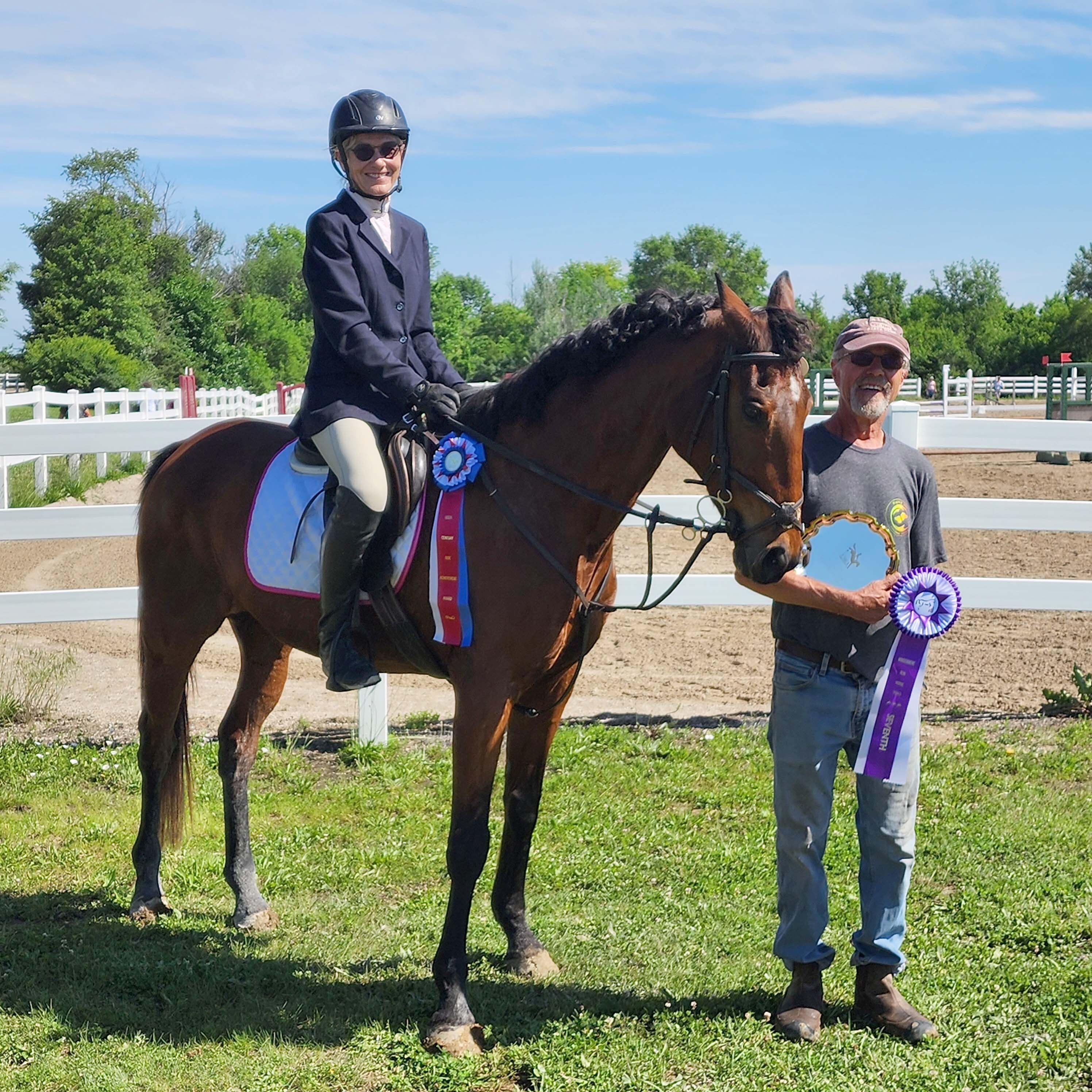 Lemberger even took a break from attempting to compete the Thoroughbred gelding when he was 15 years old. “I'd given up on showing him after about five years because he was just not settling in,” she said. “I'd take him somewhere, and I couldn't even jump over a pole on the ground. I started doing dressage lessons with him, and that kind of turned it around. Just regular dressage and being consistent with my riding.”
