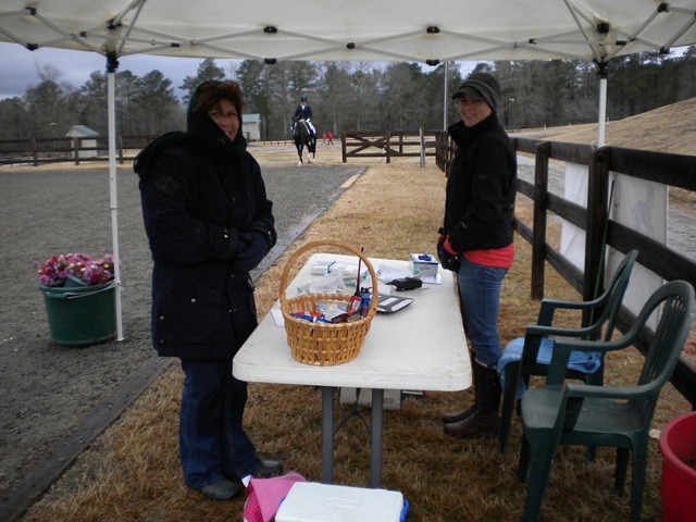 While the Northeast is buried under snow, the Southern states are soaked to the bone after weeks of cold rain. At the Poplar Place Farm February HT in Hamilton, GA, the unexpected cold tested the stamina and toughness of horse and human. I looked like a walking marshmallow myself, shuffling around the grounds hiding under a hood, and frequently digging through my little Honda for more clothing.