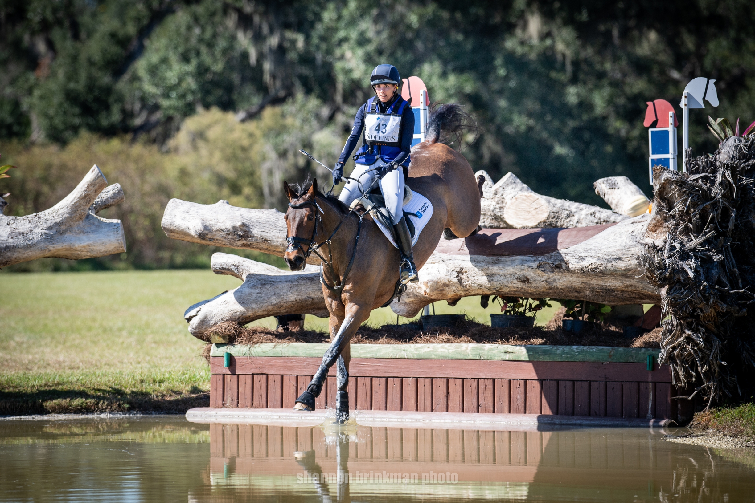 “I had a big surgery last August, so I was out for a full year. This is only his second run back, and he’s been great,” says Elliott. “The first was a three-star, then we took him to Plantation for the four-star, and now we’re here. Cross-country was tough today—I love this phase, it’s why I do the sport—but it demanded a lot of accuracy. He can be a little quirky going into water, and that bounce in was pretty impressive, so I definitely lost some sleep over that. But he was incredible. The coffin combination was heavy on everyone’s minds, especially after riding the three-star this morning, and I was a bit cautious about it. Still, it rode well. The course was fair and challenging, and it’s exciting that the designer, Alec Lochore, is also working on the LA 2028 course—that was a big part of why we wanted to compete here.”