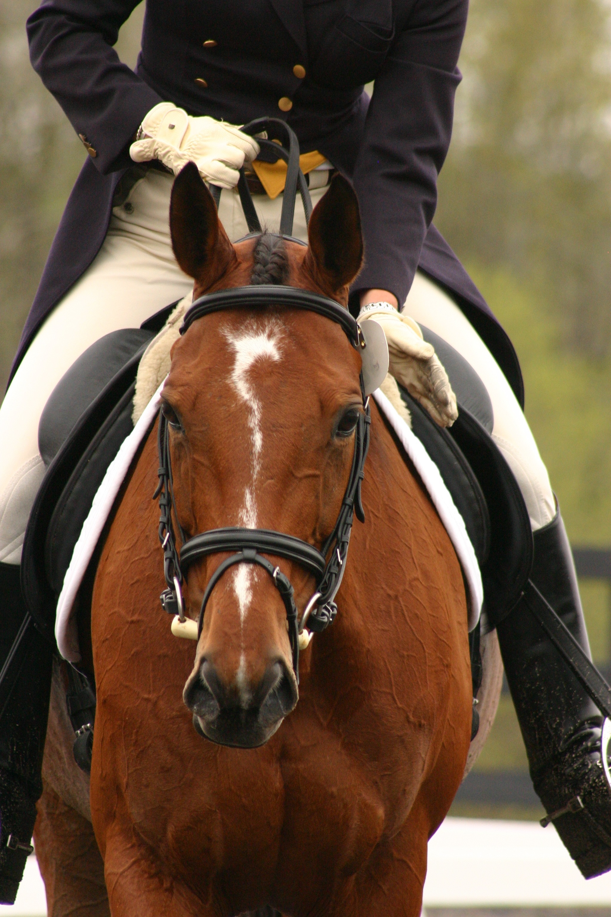 Back to Merloch - I got the chance to have a "personal interview" with him...and let me tell you, he's an absolute doll! What a sweetie... hamming it up for treats! Bonnie actually discovered him in New Zealand about six years ago for her longtime student Alexandra Zavoyna (who won individual silver on him at Young Riders in '06), but when Zavoyna went off to college, Bonnie bought him from her. "He's a true competitor... at least he always tries to be," said Bonnie.