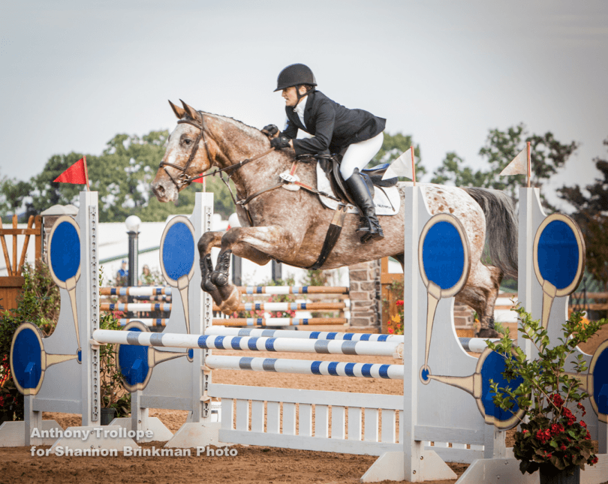 Corinna Garcia came from Ohio to Texas to win the Novice Horse division on Jamaica Skodstrupp with a double-clear round, finishing on their dressage score of 23.0. The 8-year-old mare is as eye-catching as she is athletic, with a unique color pattern that is characteristic of a rare breed.