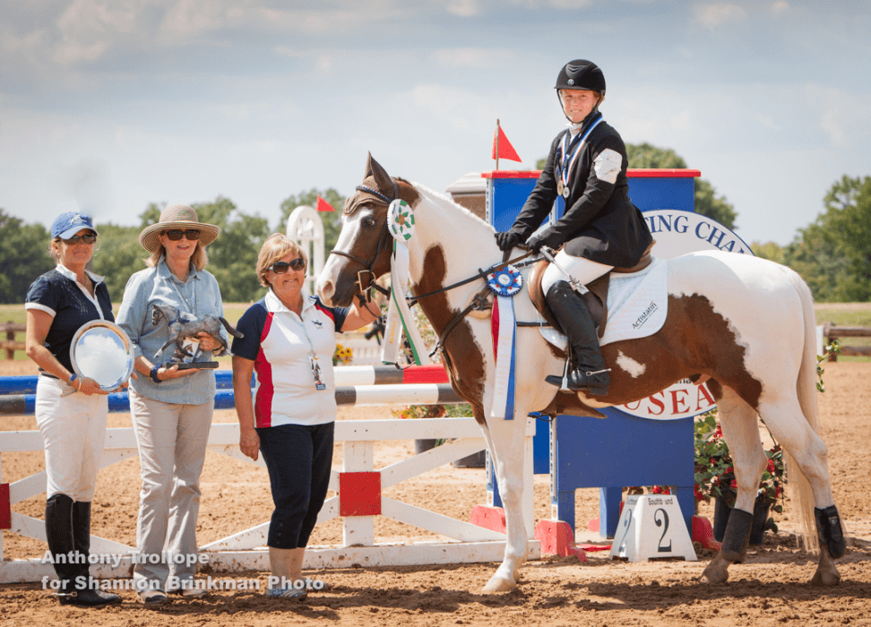 Today, they won the Broadstone Beginner Novice Junior (14 & Over) division on a 27.5. Melissa’s coach, Bridget Mason, said that 15-year-old Morris (Liberty, Mo.) has done all of the training on the pony herself.