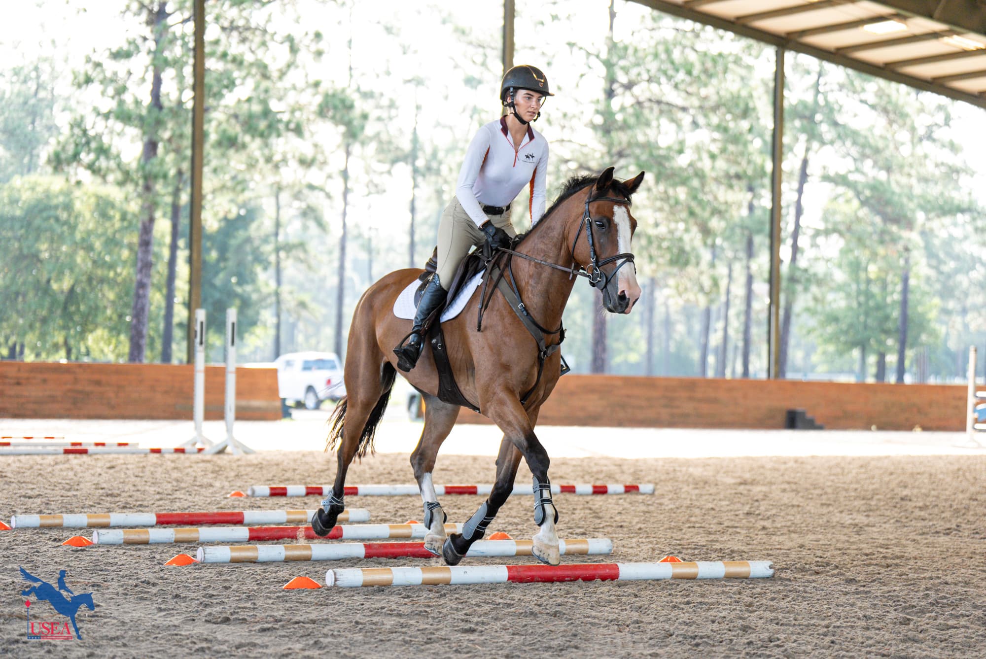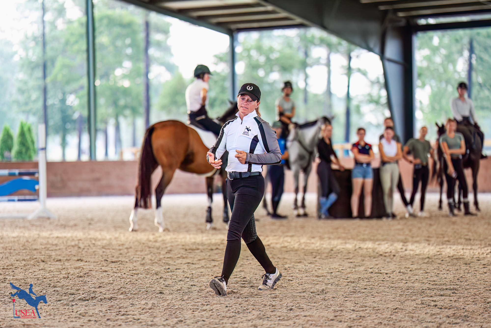 Aiken, S.C.—July 24—An ambitious start time of 6:30 a.m. for the final day of the USEA Emerging Athlete U21 (EA21) East Coast II Regional Clinic meant riders and horses could beat the southern heat. However, the early morning hour didn’t appear to phase any of the bright-eyed clinic participants or EA21 Coach Emily Mastervich Beshear. The enthusiasm carried over from day 1’s sessions was palpable, and Beshear didn’t waste any time “jumping” into today’s theme: assess your situation and respond accordingly.