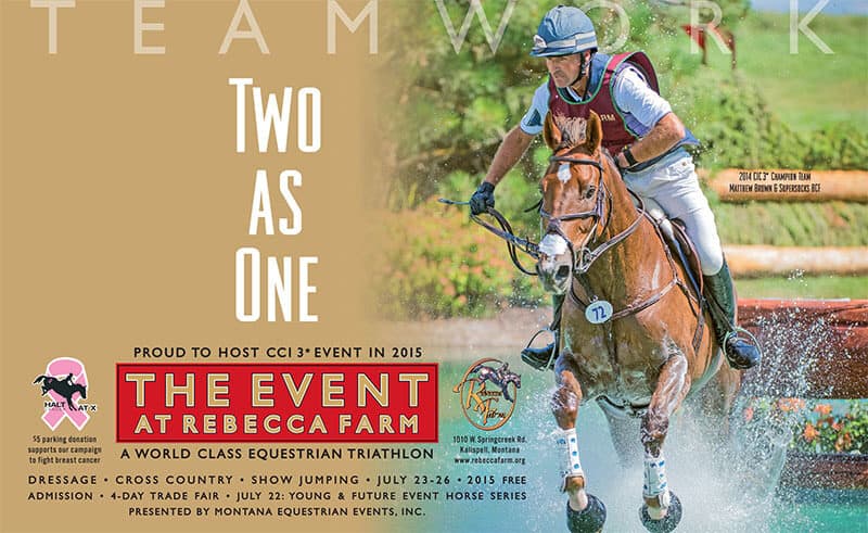 More than 40 local sponsors, as well as the 30 newly developed Rebecca Farm Patrons, support The Event at Rebecca Farm that is run by Montana Equestrian Events, Inc., a 501(c)(3) non-profit organization created for the public good. This summer, Rebecca Farm welcomes a new Trophy Sponsor and an exciting partnership with The HealthCenter, an acute care facility providing inpatient and outpatient services in surgery, imaging, rehabilitation, wellness and pain management, and women's health to the Flathead Valley and across the state.