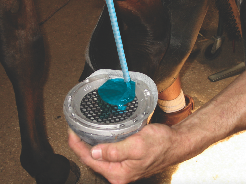 To help with the healing process, hoof care professionals can also use pour-in pad materials to engage the frog and push the contracted bulbs back out. Fast-setting, soft pad materials that bond directly to the sole and frog stimulate the frog to work and function normally. This helps widen the bulbs and distribute weight evenly throughout the foot.