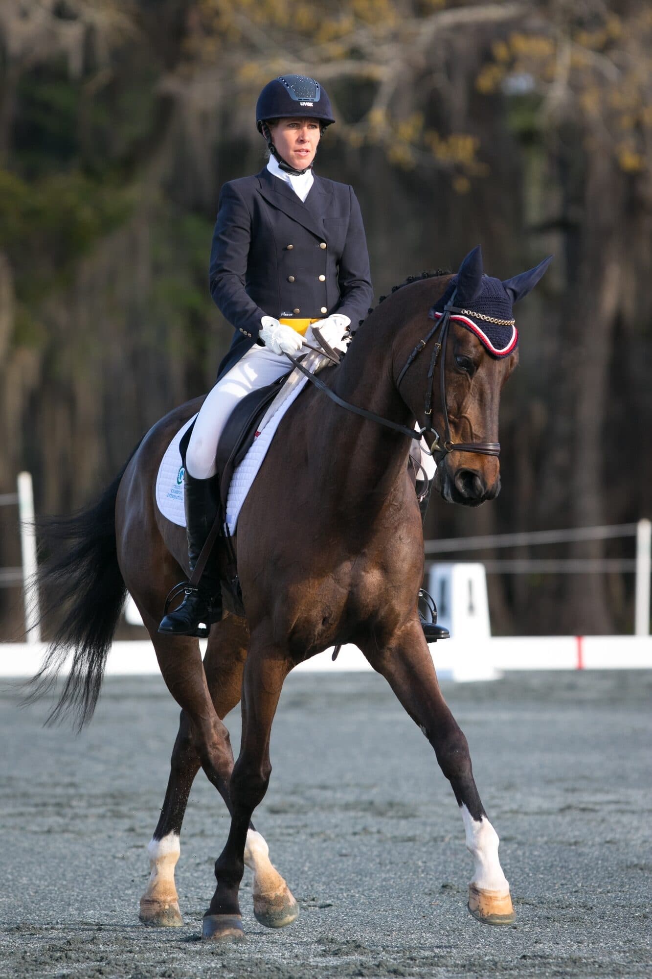 Lauren Kieffer put in an accurate test to grab the second place standing on Court and Kylie Ramsay’s Czech Warmblood gelding, Czechmate. The gelding was acting a bit ornery before heading into the ring, and when asked how she copes with it, Lauren explained, “That type of behavior is pretty typical for him, but I’ve learned to laugh it off and just keep moving forward and get in the ring to deliver a thorough test.” The pair managed to put in a very good test, scoring a 42.7.