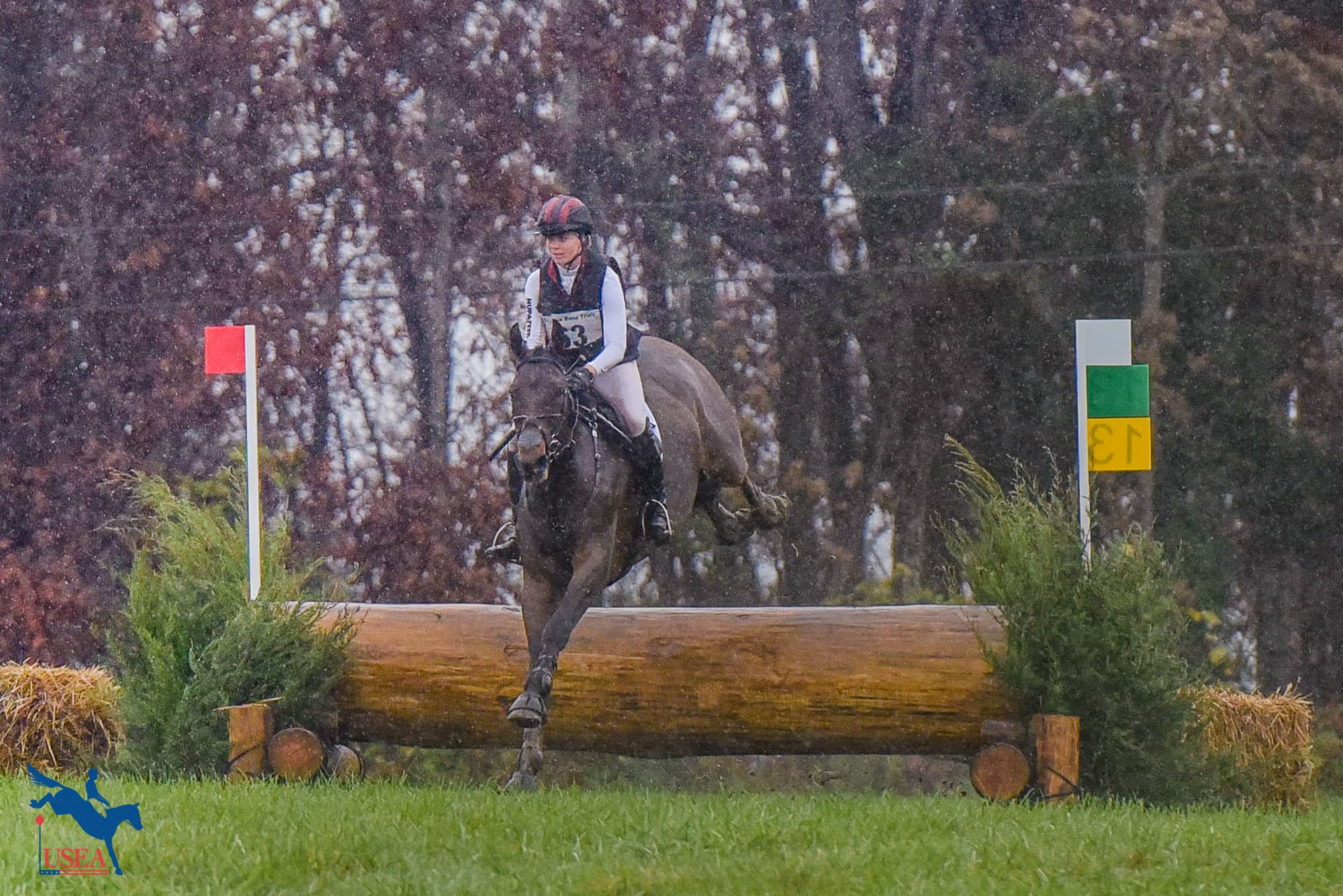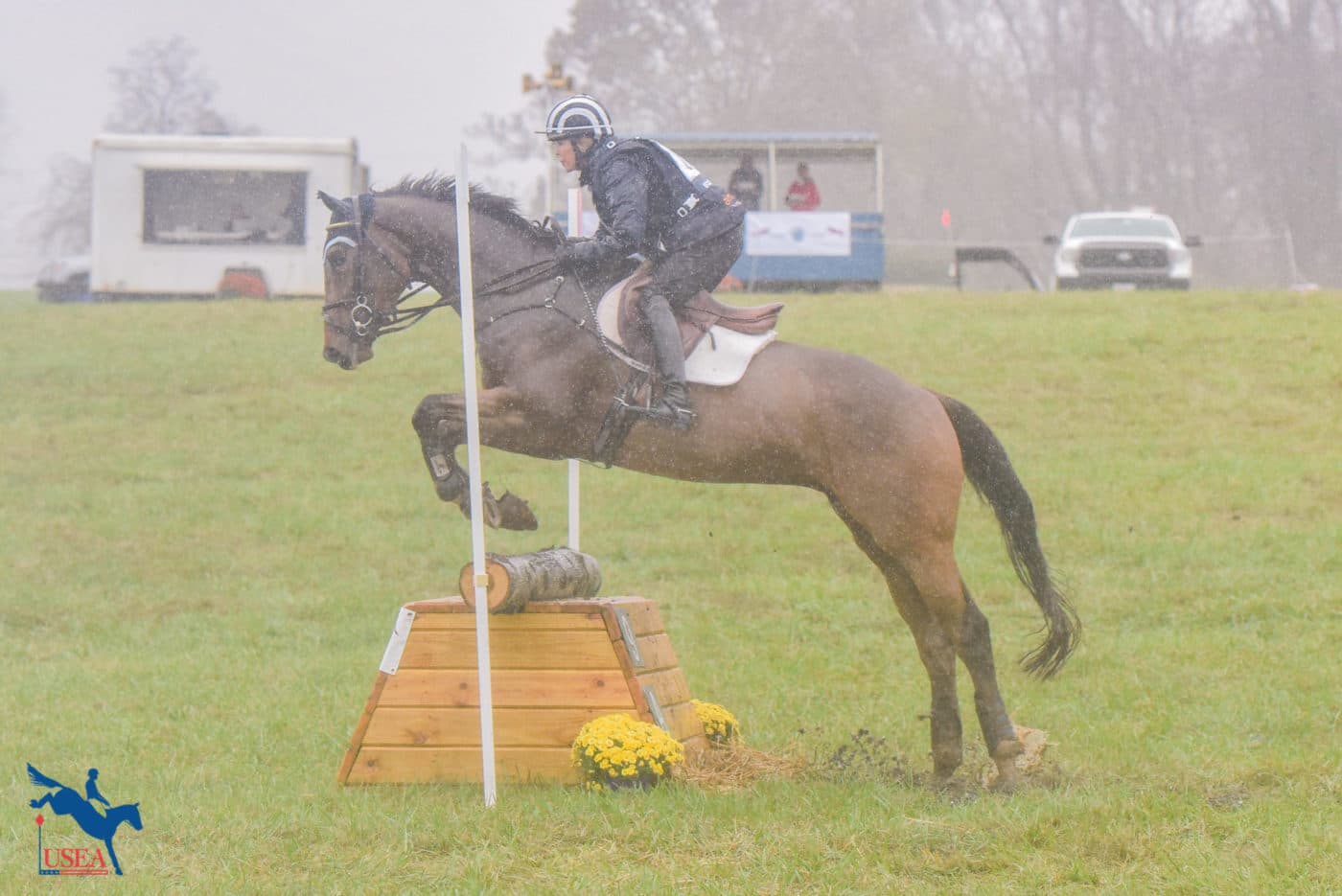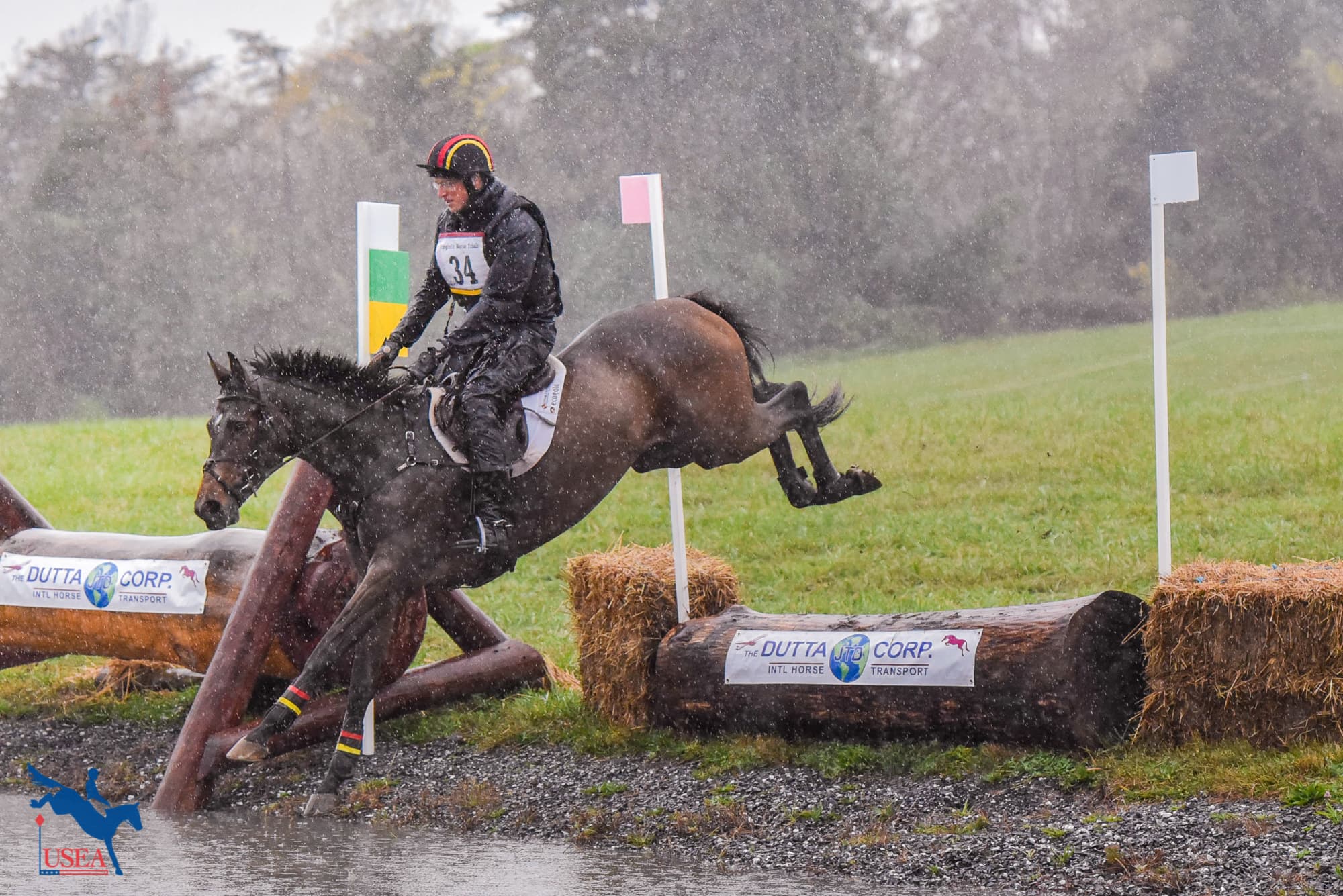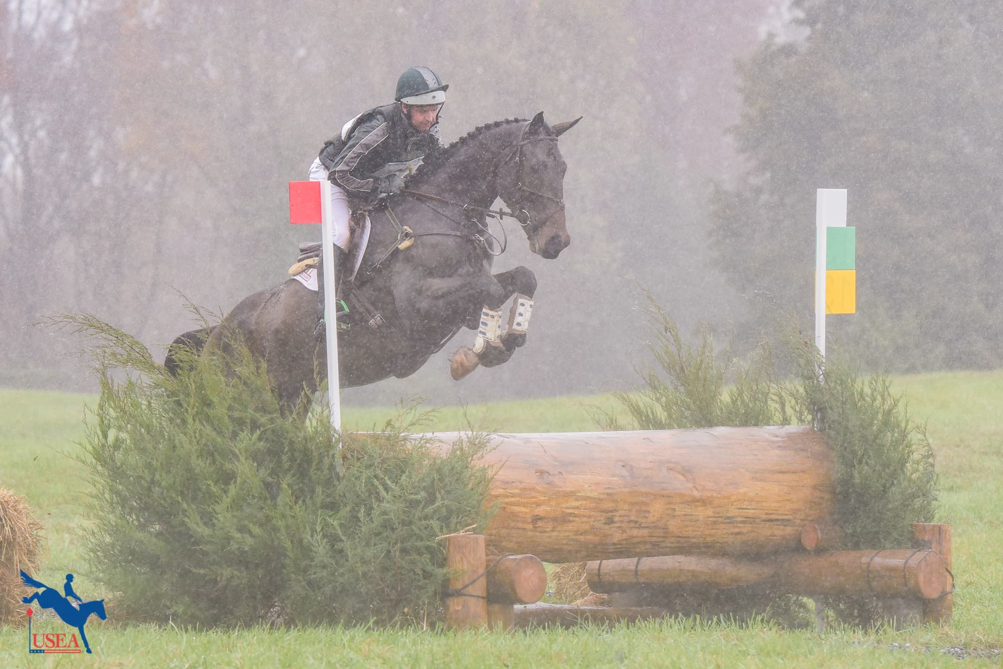 Kismet was well-prepared for today’s endless rain and wet footing by Brannigan’s home in hunt country. “I was pretty proud of him on cross-country. I thought he was brave and super. I live in hunt country and we have been doing these rides where we go ride through the creeks and jump all the hunt jumps and just get them going out doing more natural cross-country leading into this and I think it really helped actually especially in the conditions today.”