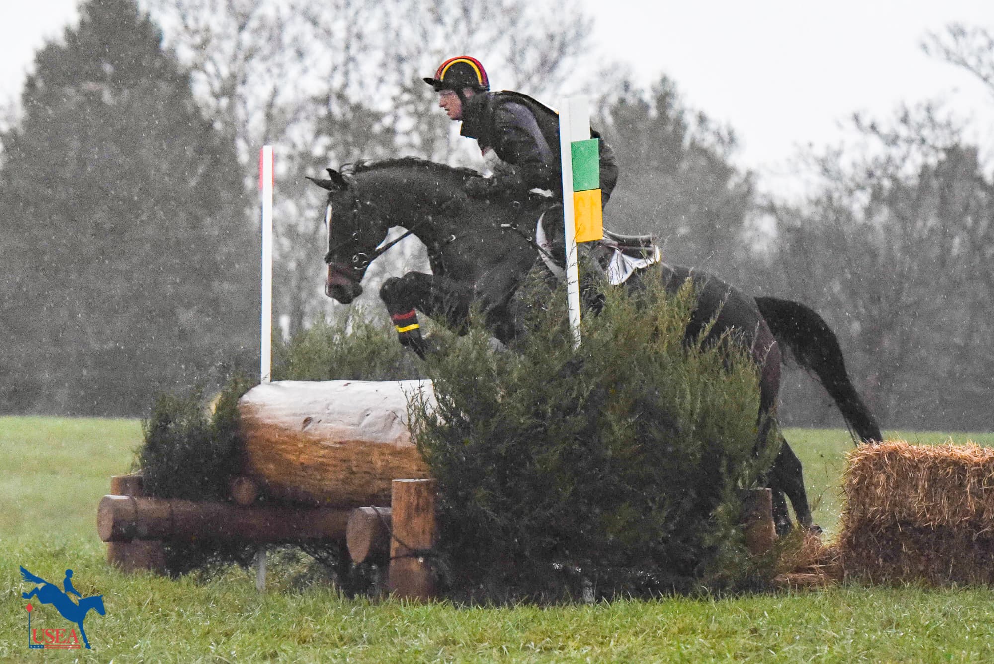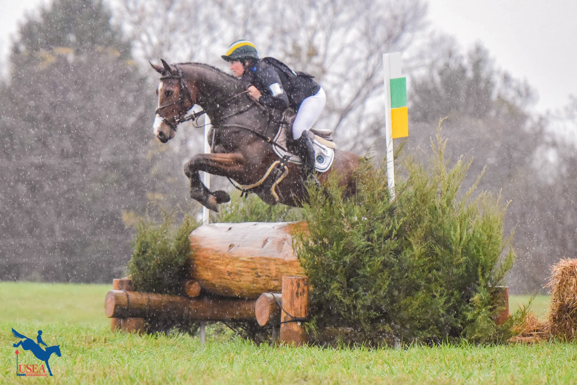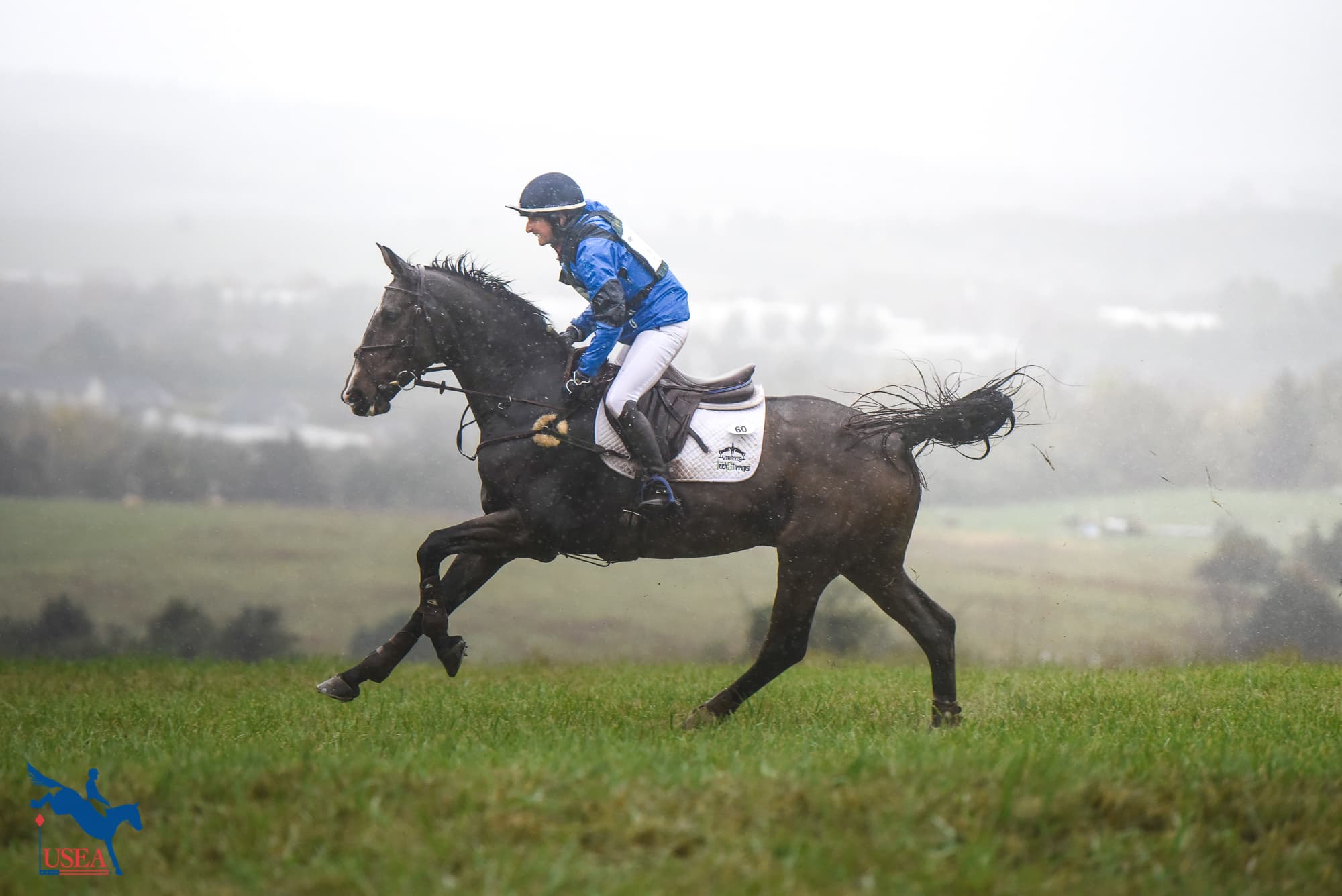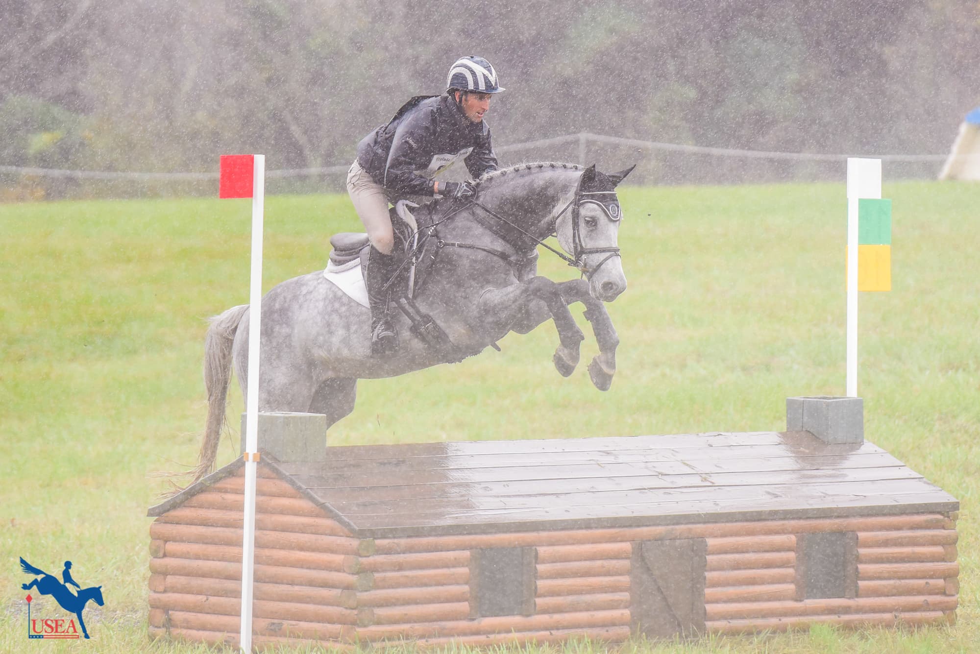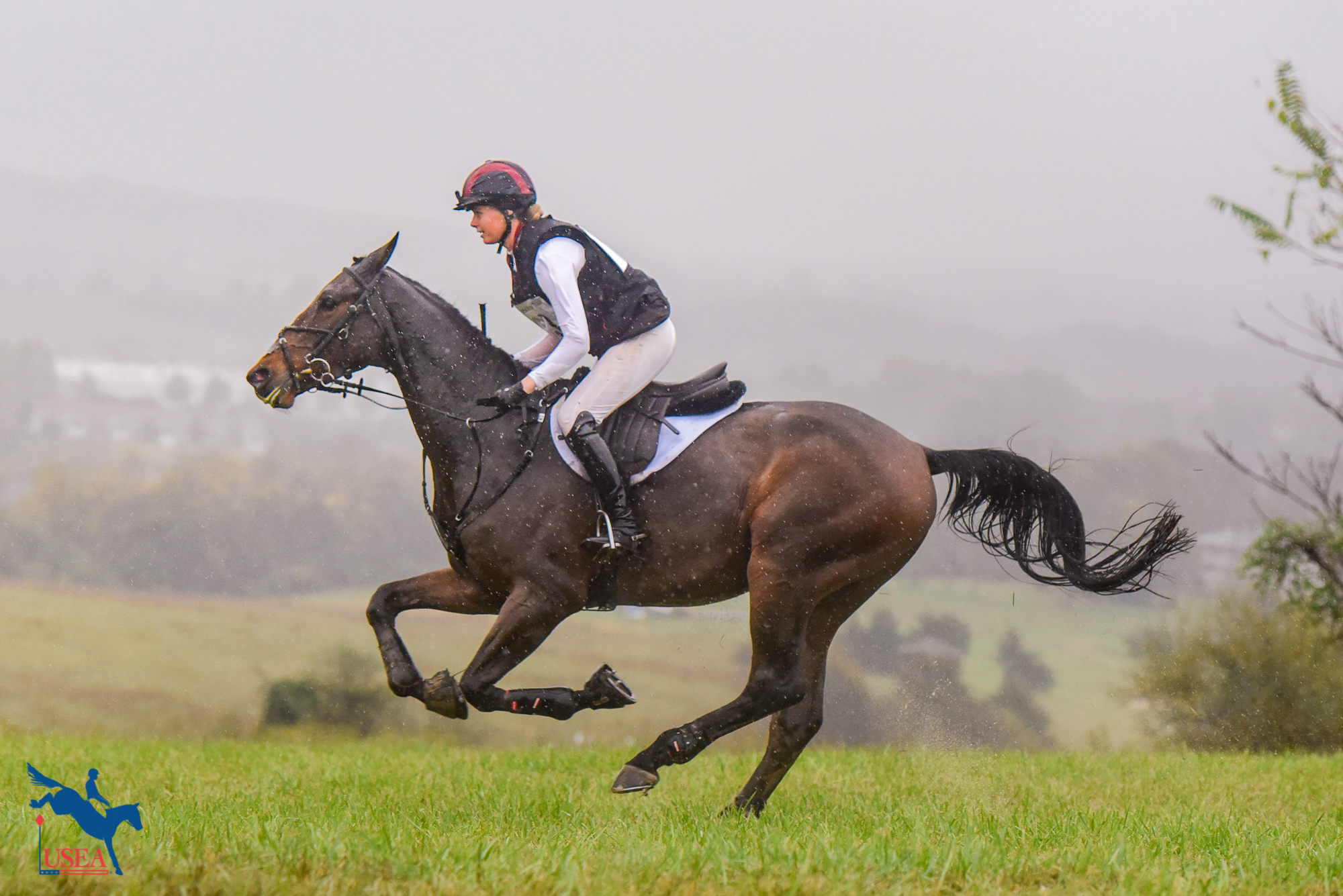 Kismet was well-prepared for today’s endless rain and wet footing by Brannigan’s home in hunt country. “I was pretty proud of him on cross-country. I thought he was brave and super. I live in hunt country and we have been doing these rides where we go ride through the creeks and jump all the hunt jumps and just get them going out doing more natural cross-country leading into this and I think it really helped actually especially in the conditions today.”