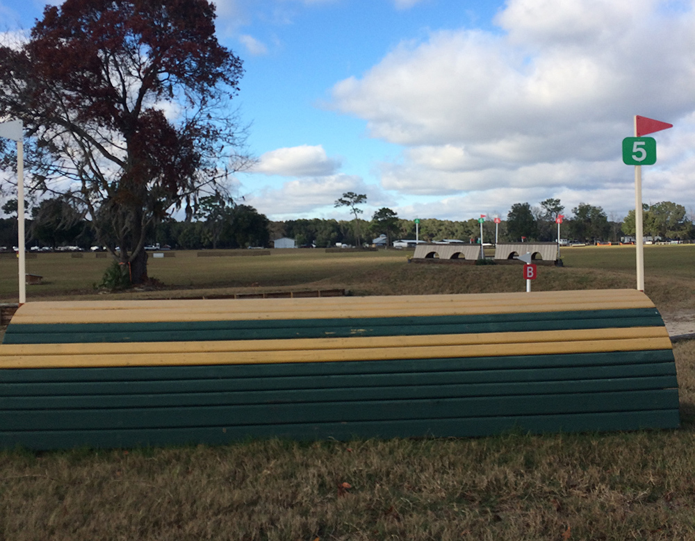 A few things to consider about this fence straight away were the terrain changes (we don’t always get a lot of that in Ocala!), combined with the fact the it was early in the course and the fences before were fairly open and galloping. When I walk a course I like to always consider each horse that I will be riding and how I feel they will approach the question - in this case I had three young horses with minimal or no Preliminary experience, so I wanted to make sure that they were organised and could read the question appropriately. Another thing that I always like to consider before any sort of combination like this is what the fence is that I am jumping before, and how that preceding fence will affect the combination and the approach. On this course we had four galloping-type fences and then a fairly sharp right turn to fence five which was a half round with a sloping landing, and it then lead to the next mound with 6a on top. It was important in this situation to gain a bit of control and respect before fence 4 so that you could then land with some control already, and then compress the gallop more easily and make the right turn without having to create a wrestling match with your horse.