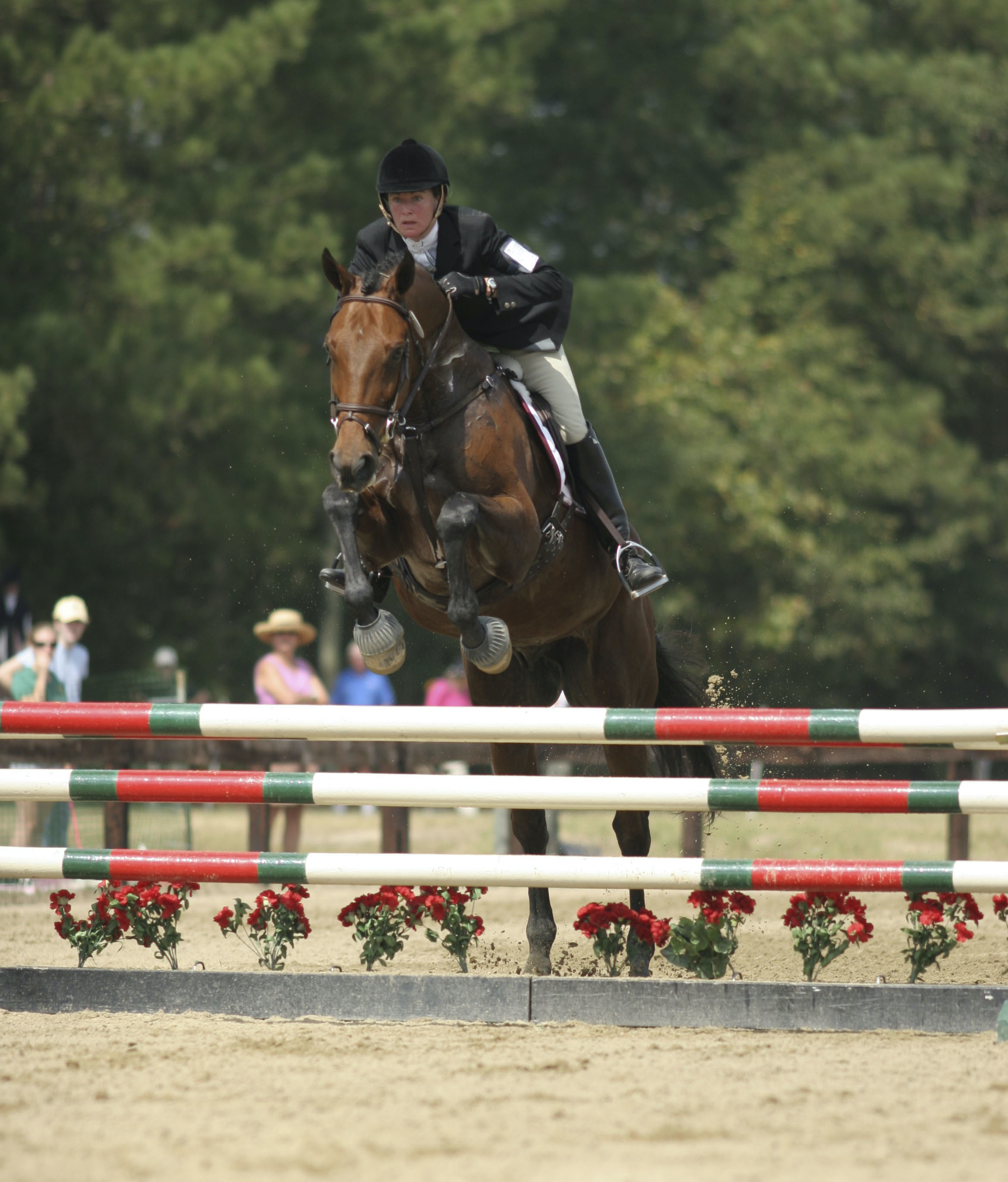 It was a weekend of firsts for Sher Schwartz and her mare Jamocean, who won the Novice Championship at the very first AEC in 2004. “‘Mom, you won!’ exclaimed my son Drew from across the jumping ring,” Schwartz recalled. “I was perplexed as my husband, Elliot, had just told me that the reason no one clapped at the end of my round on Nothing Spared, with whom I was in first place, had taken a rail. I was then informed by Drew that Jamocean, who had been in third and who I had jumped earlier in the day, had WON! This was an event of firsts - the first [division to finish] in the first-ever AEC, and the first time Jamocean had won [an event]. She was also the first horse in the Novice [division] of 76 to go into the dressage ring. [She] received her lowest score ever, completed cross-country exactly on the optimum time, and show jumped clean. To say I was ecstatic would be an understatement. The icing on the cake was my horse, Wonderful Will, won the DeBroke Trophy in the Preliminary division. Everyone connected with the inaugural AEC at Carolina Horse Park did a tremendous job,” Schwartz concluded.