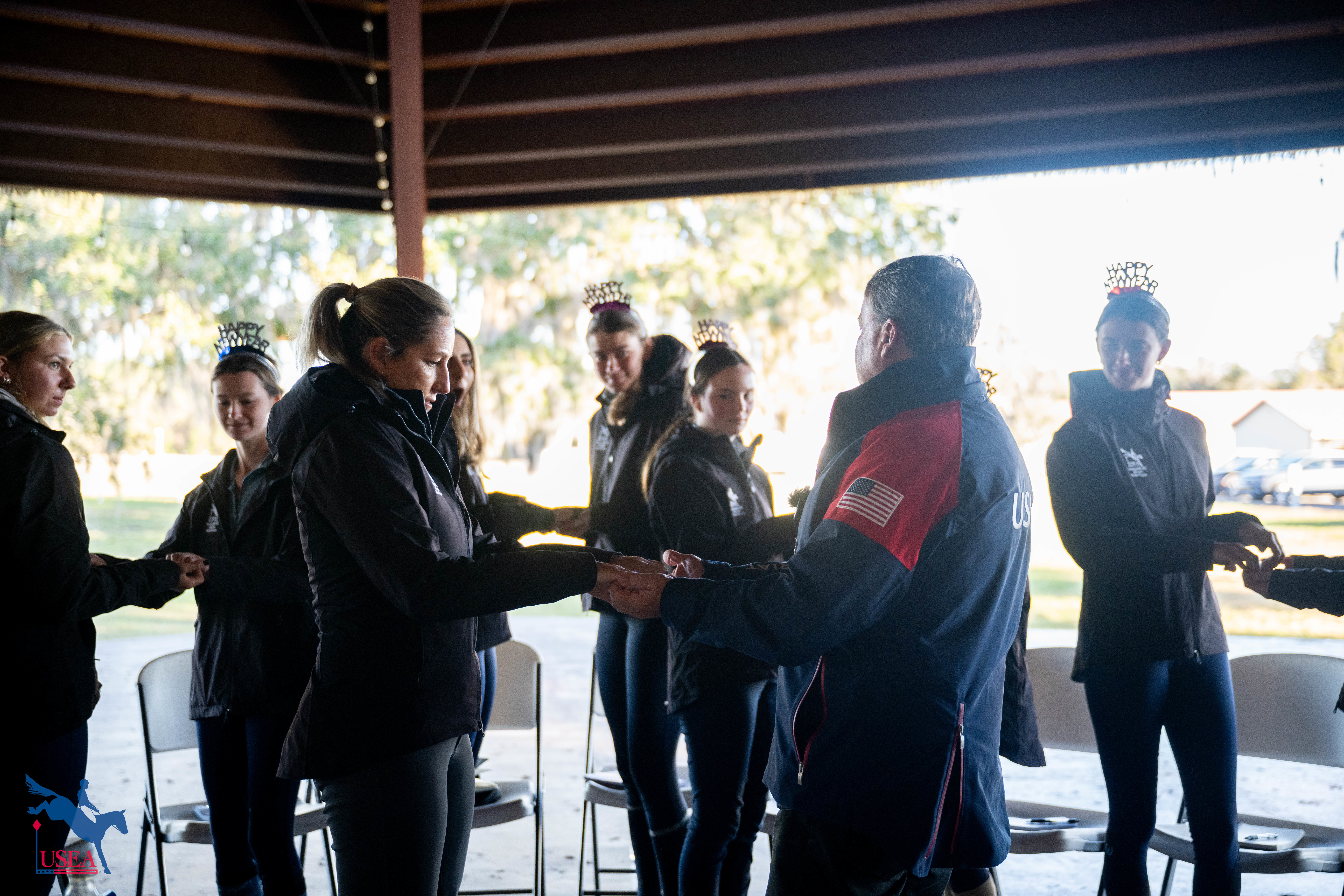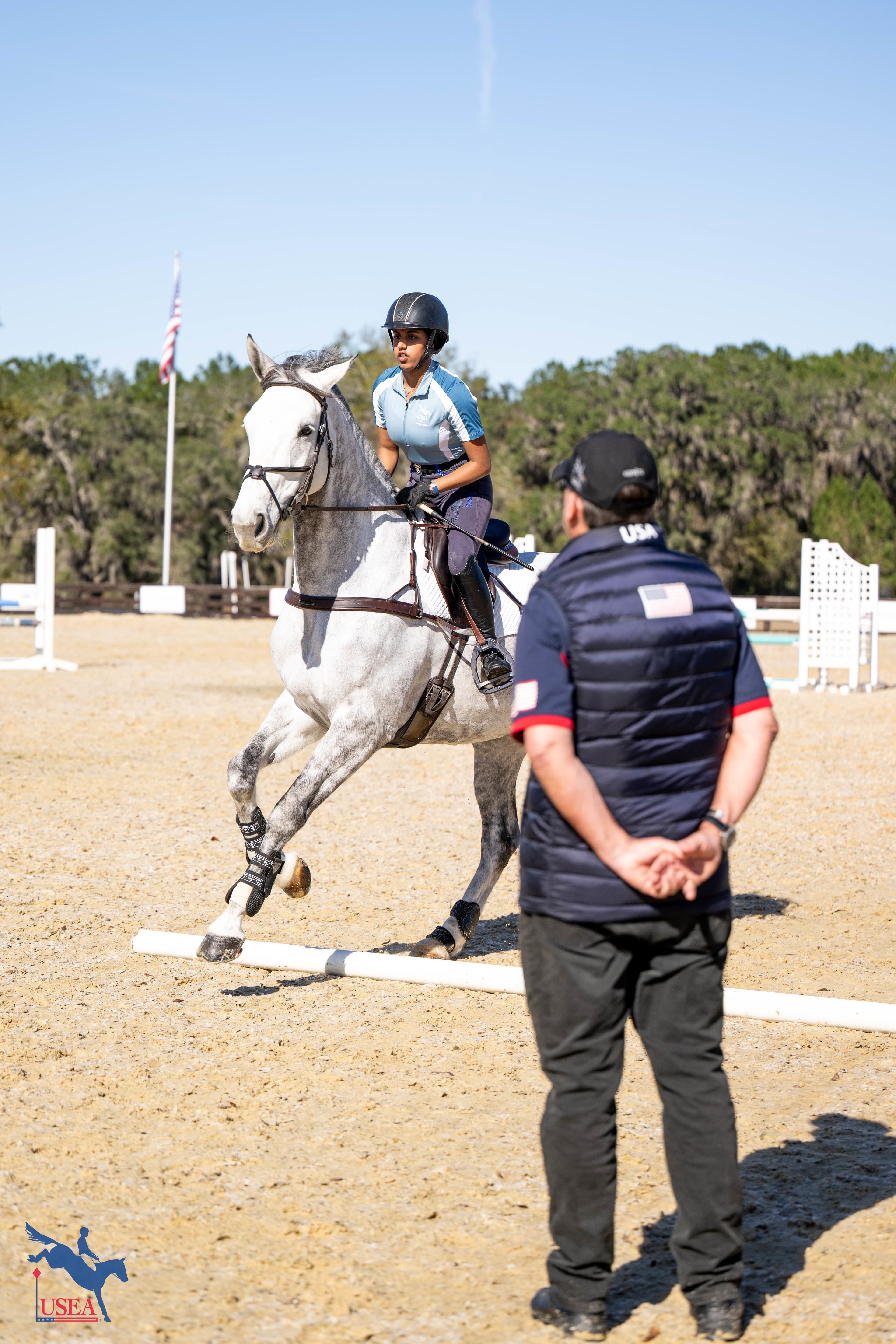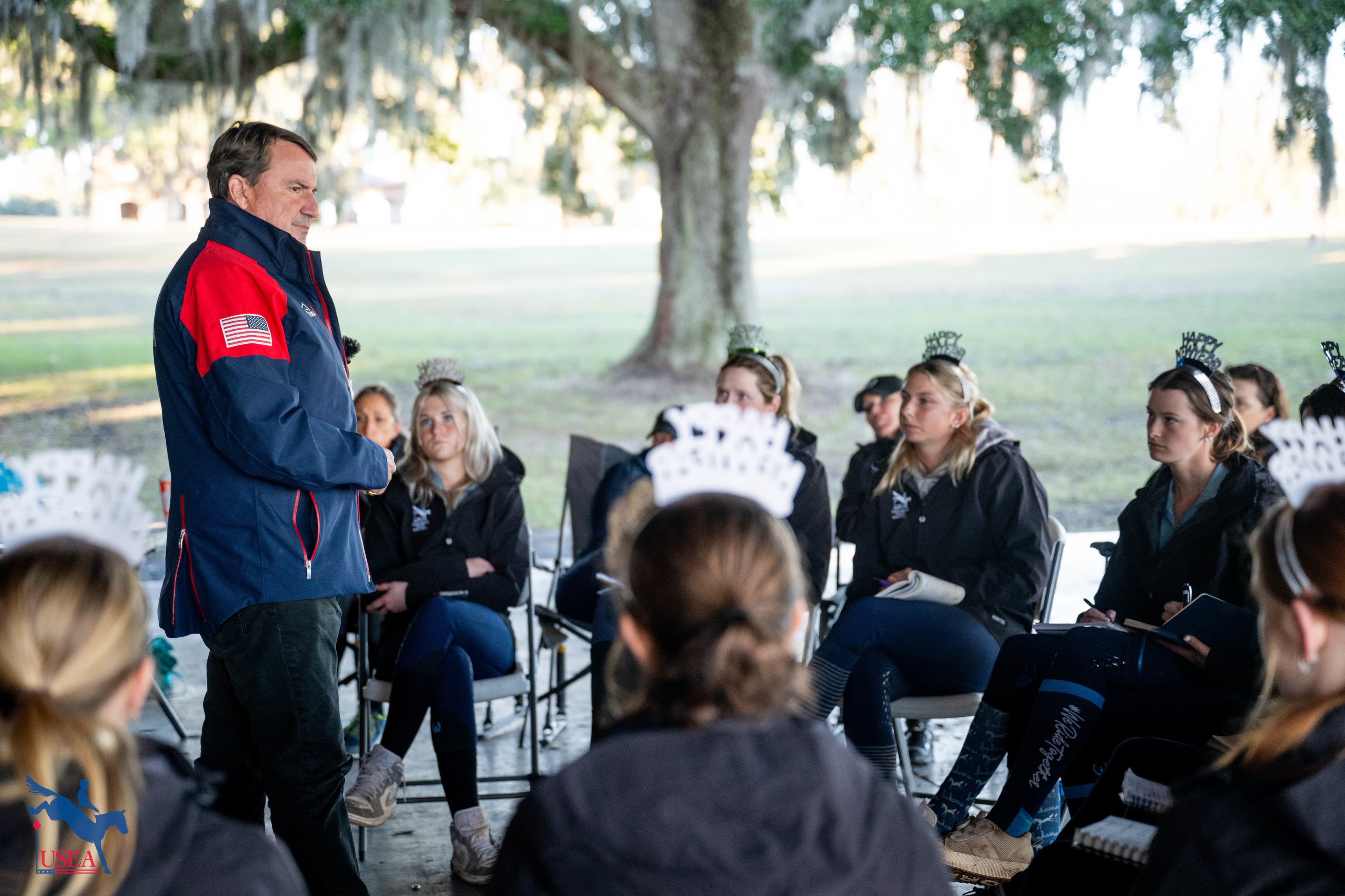 Ocala, Fla.—Jan. 1—Having established clear lines of communication yesterday on the flat, it was time to take those tools to the jumping arena during day two of the 2024-2025 Emerging Athlete Under 21 (EA21) National Camp held at Sweet Dixie South in Ocala, Florida. The curriculum for the second day focused on the rider’s responsibilities and maintaining rideability.